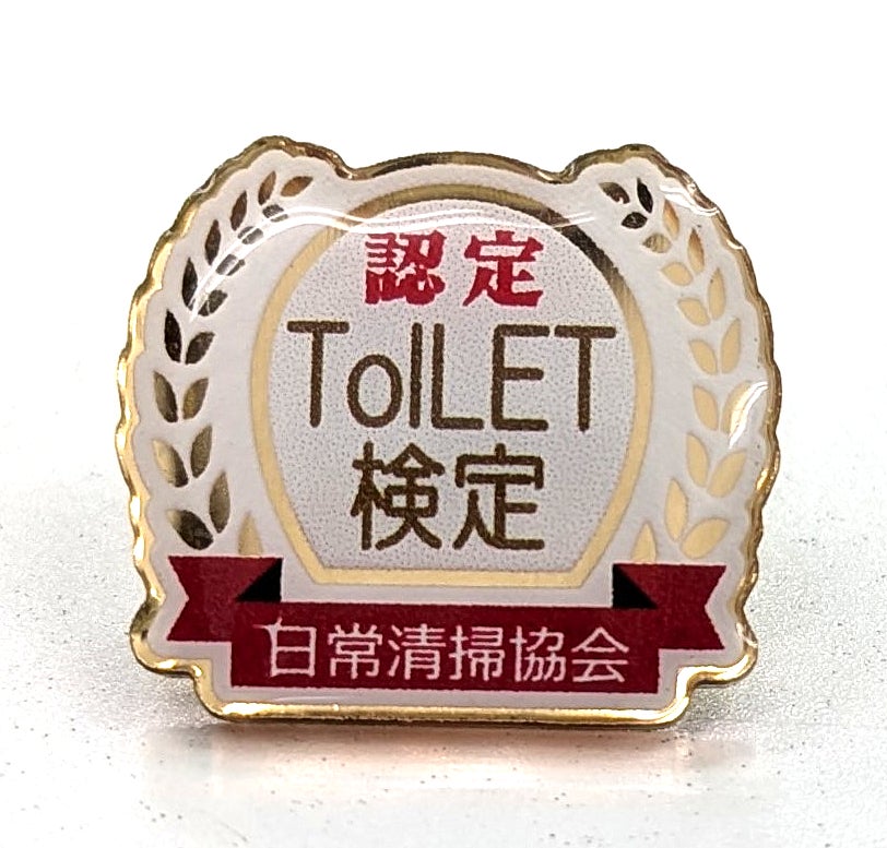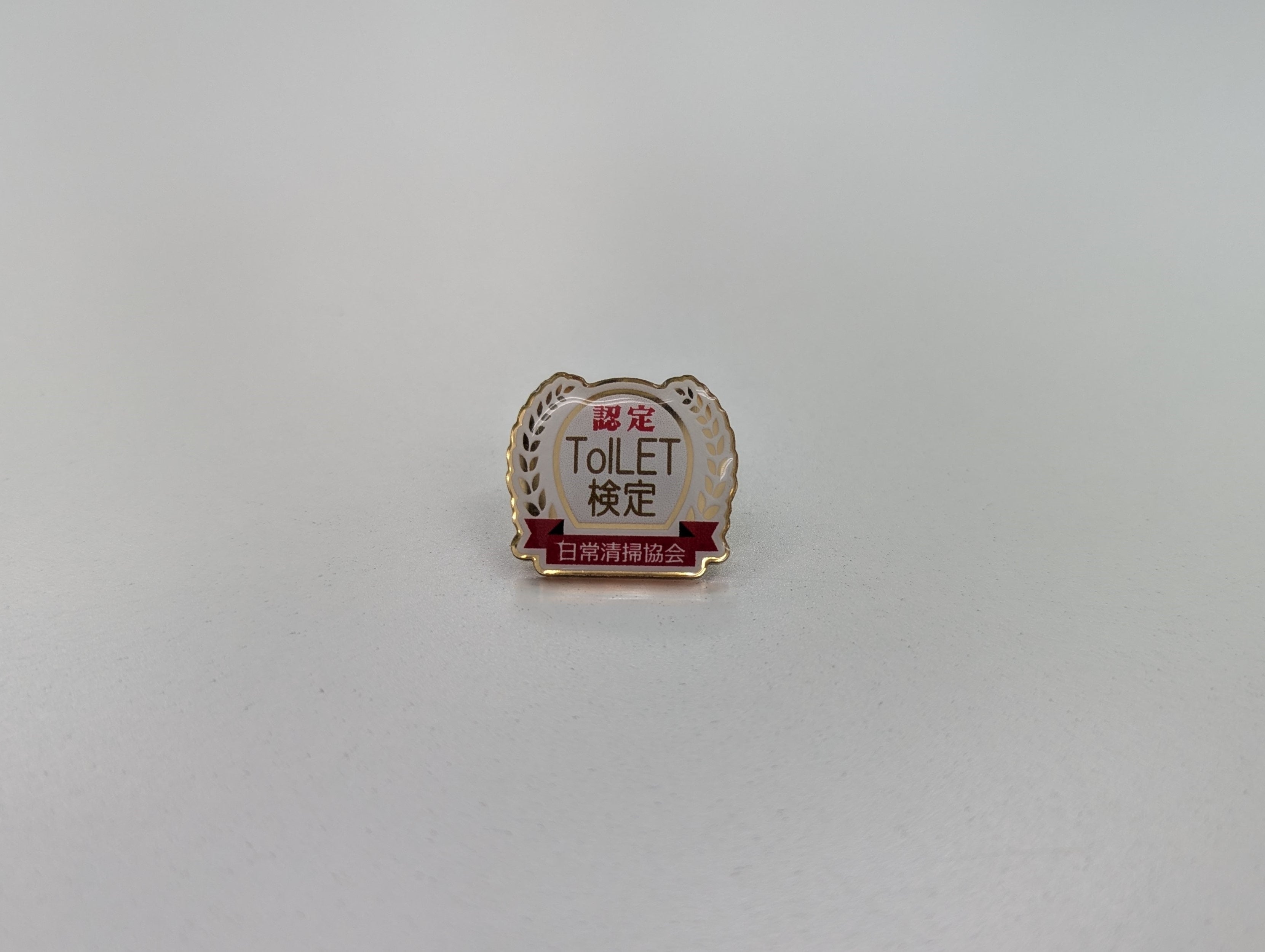 この検定を、清掃の日にあたる9月24日に一般公開いたします。合格者に授与する認定バッチは、制服やスーツに着けてもなじみやすいゴールドを基調としたデザインです。就職活動や入学試験の場で自身をアピールできます。