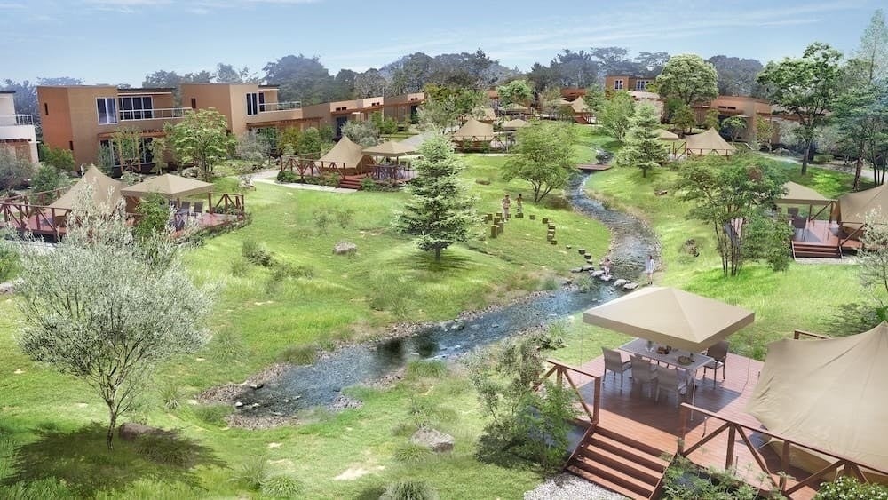 一般的な「キャンプ」や「グランピング」といったこととは一線を画した、自然に囲まれた広大な敷地に上質な宿泊空間と豊富なアウトドアアクティビティをご用意し、訪れる全てのゲストに日常の喧騒を離れ、自然と調和した贅沢なひとときをお楽しみいただけます。