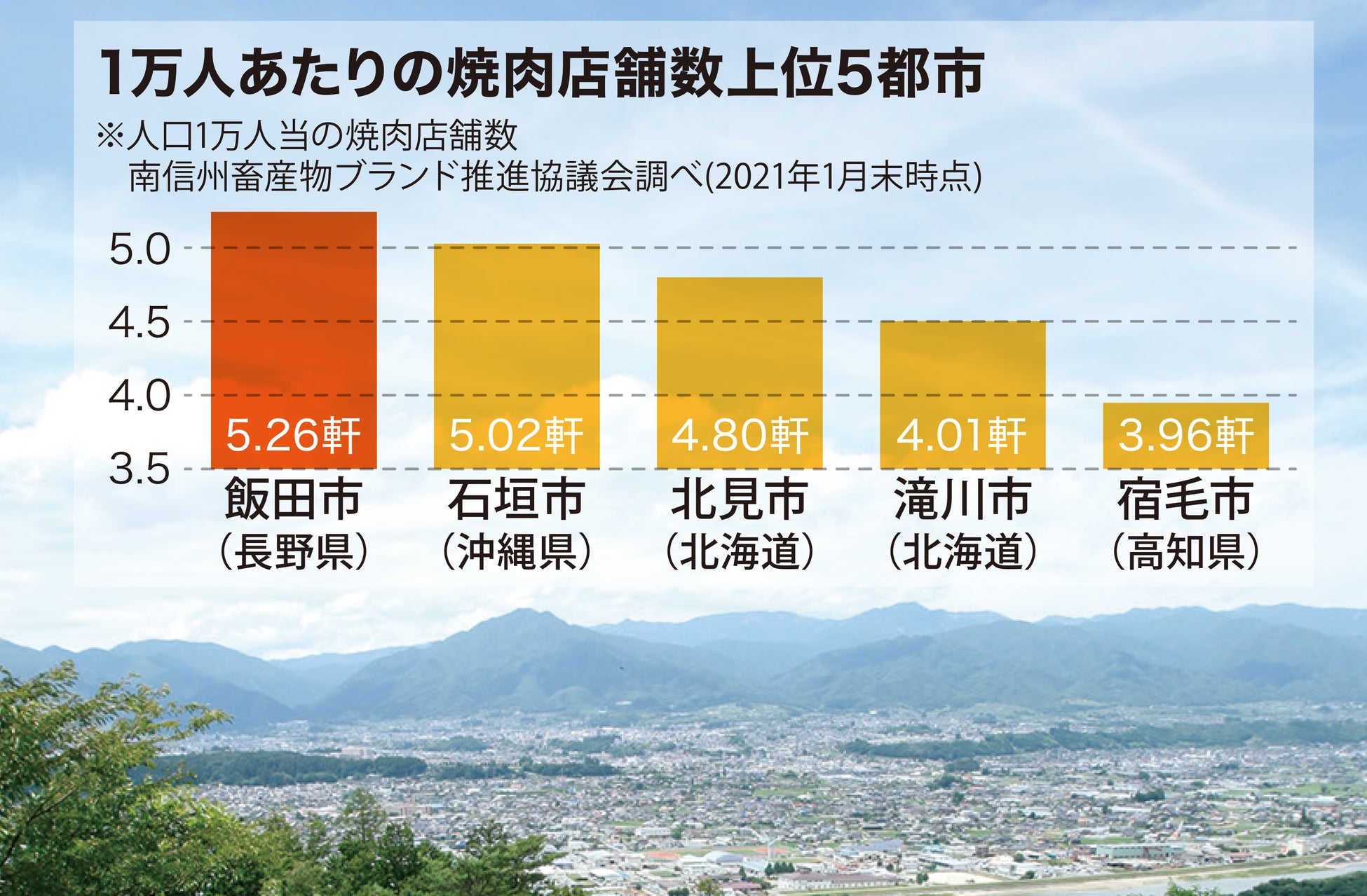 焼肉の街・飯田市は長野県南部に位置する人口約10万人の都市。