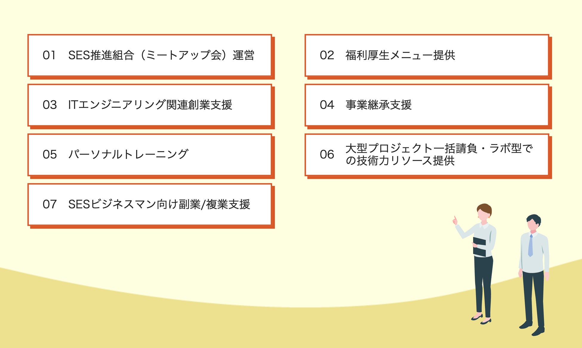 ITフリーランス、SES事業者の活動を支援する、多様なサービスを展開。