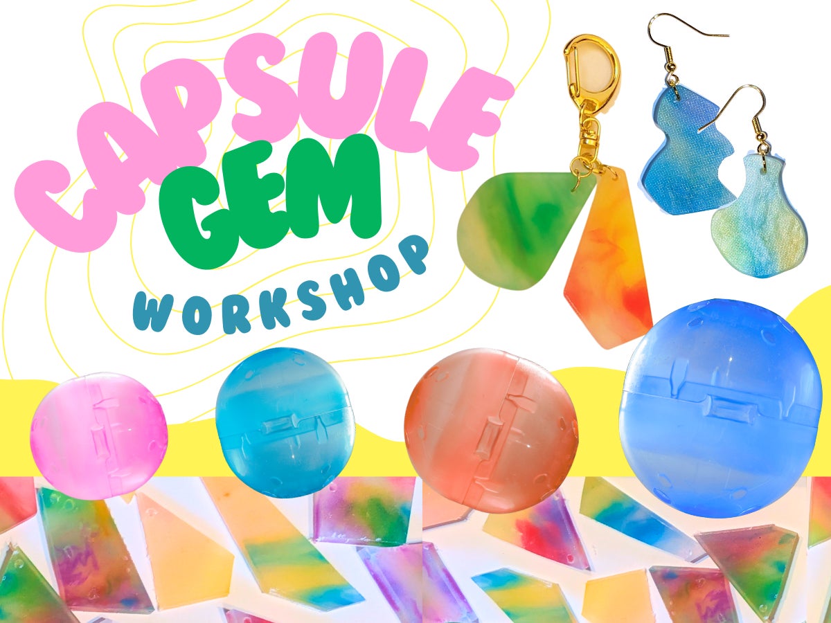 捨てられたガシャポンのカプセルをリサイクルして作ったカラフル・キラキラな「カプセルジェム」を使って、世界に一つだけのオリジナルアクセサリーを作ろう。