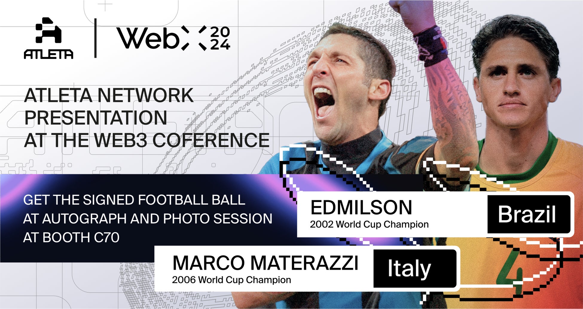 モデュラー型、マルチレイヤーのブロックチェーンネットワークであるAtletaは日本、東京で開催される2024WebXカンファレンスにゴールドスポンサーとしてご参加することを発表しました。Atletaはこの分野の最初の専用ブロックチェーンであり、スポーツ業界の安全性、効率、透明性を強化する位置づけがあります。国際レジェンドであるマテラッツィ・マルコ及びエドミルソンはAtletaブースのチームにご参加、ご来場者の皆様と話合い、サイン会及び写真撮影会にもご参加します。