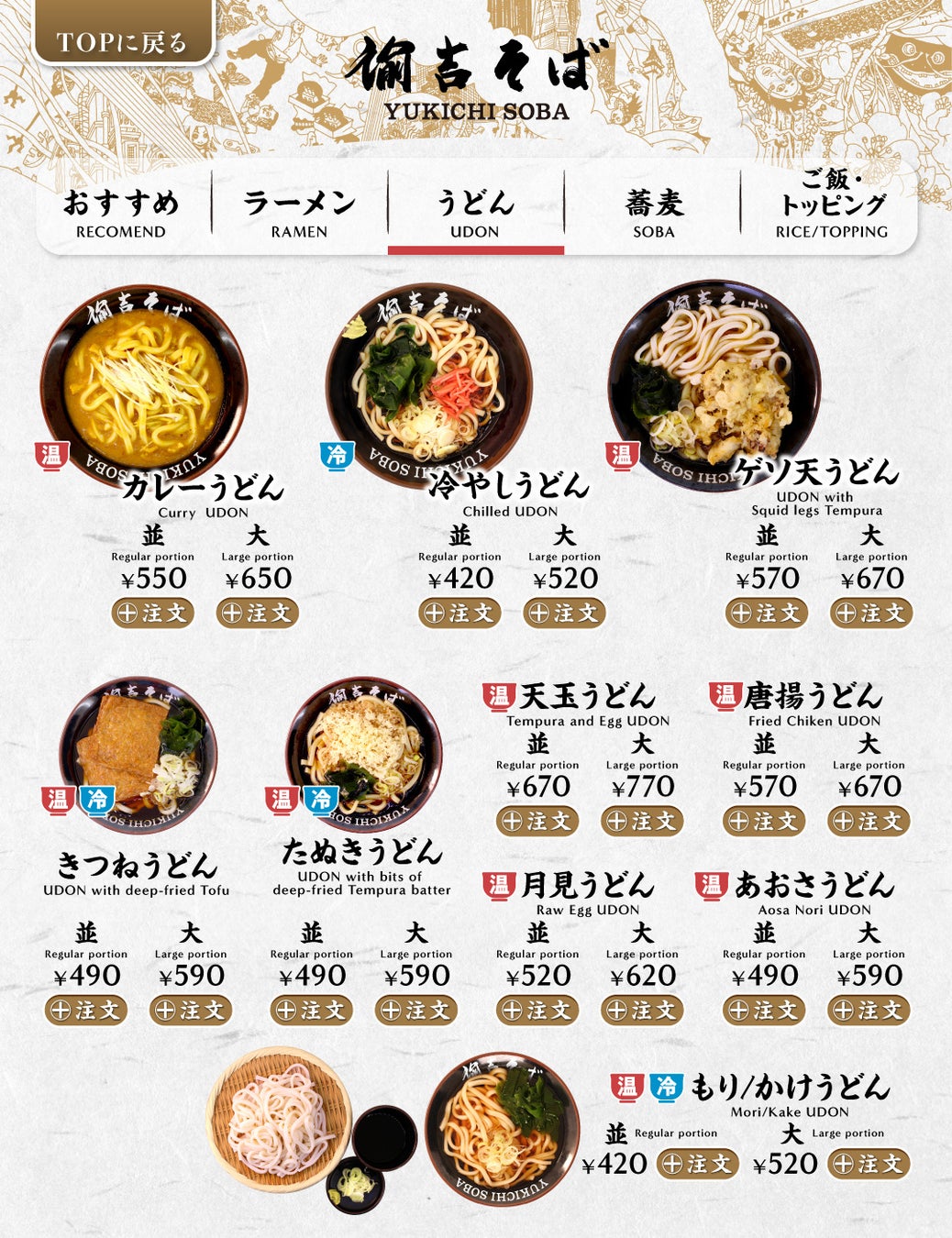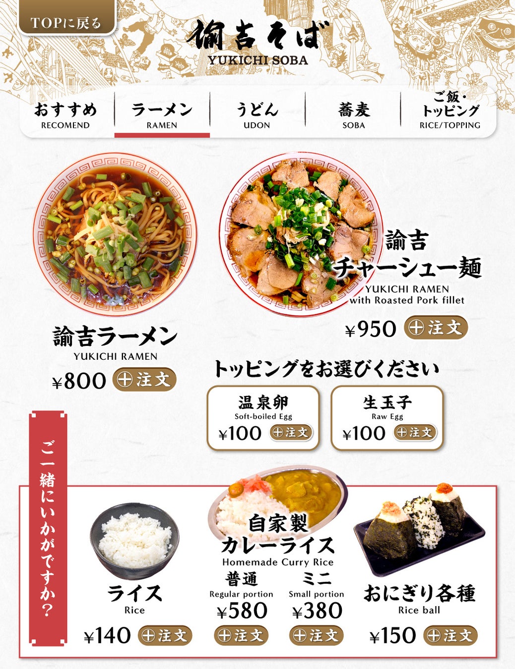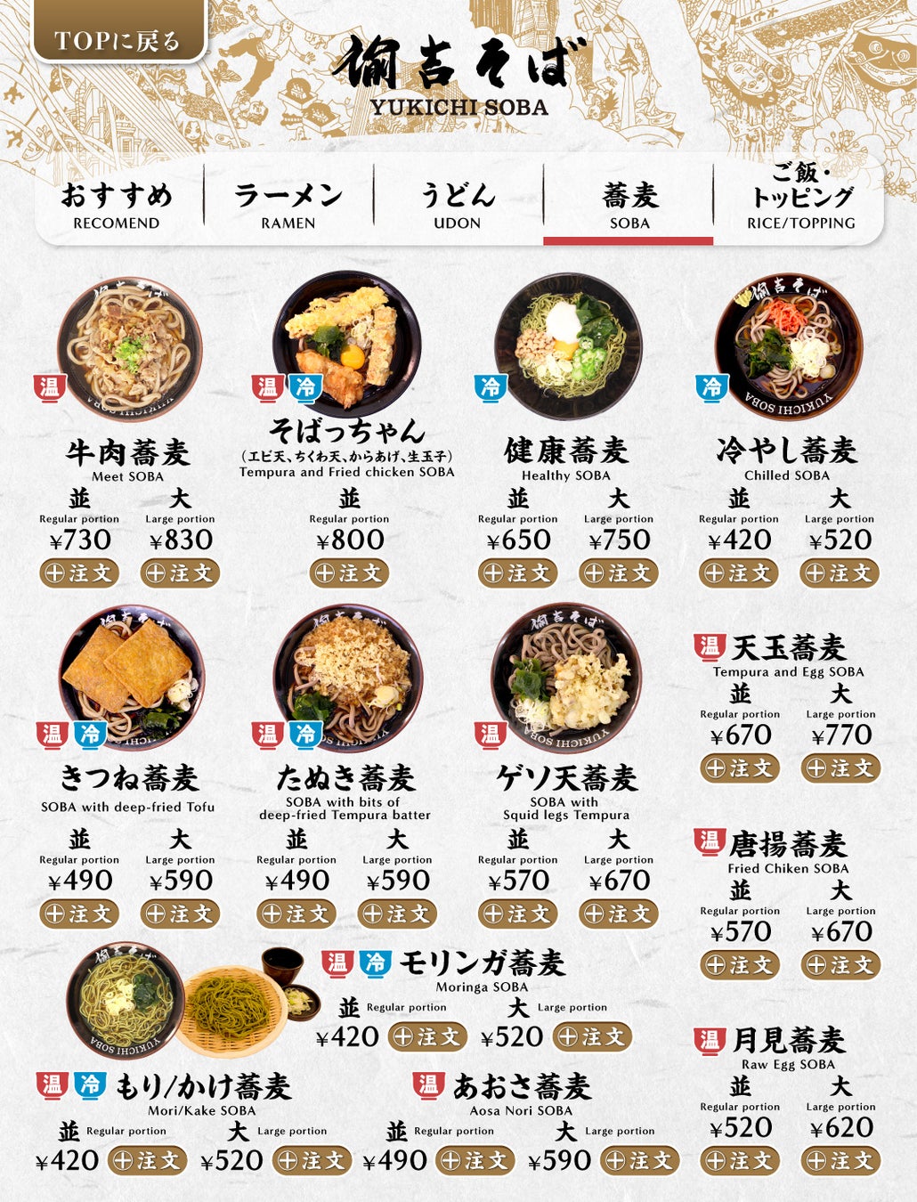 長年愛される定番メニューからあっと驚く新作まで!つねに進化をし続ける「諭吉そば」のメニューの数々をご紹介。