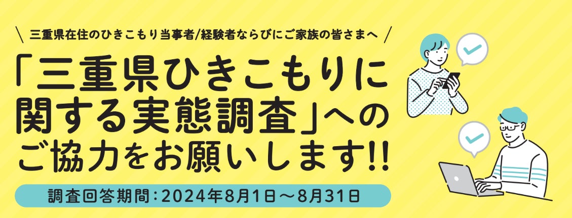 三重県内の「ひきこもり」推計2万人。当事者や家族の支援ニーズを把握する「三重県ひきこもりに関する実態調査」を実施中!回答期間:2024年8月1日(木)~8月31日(土)