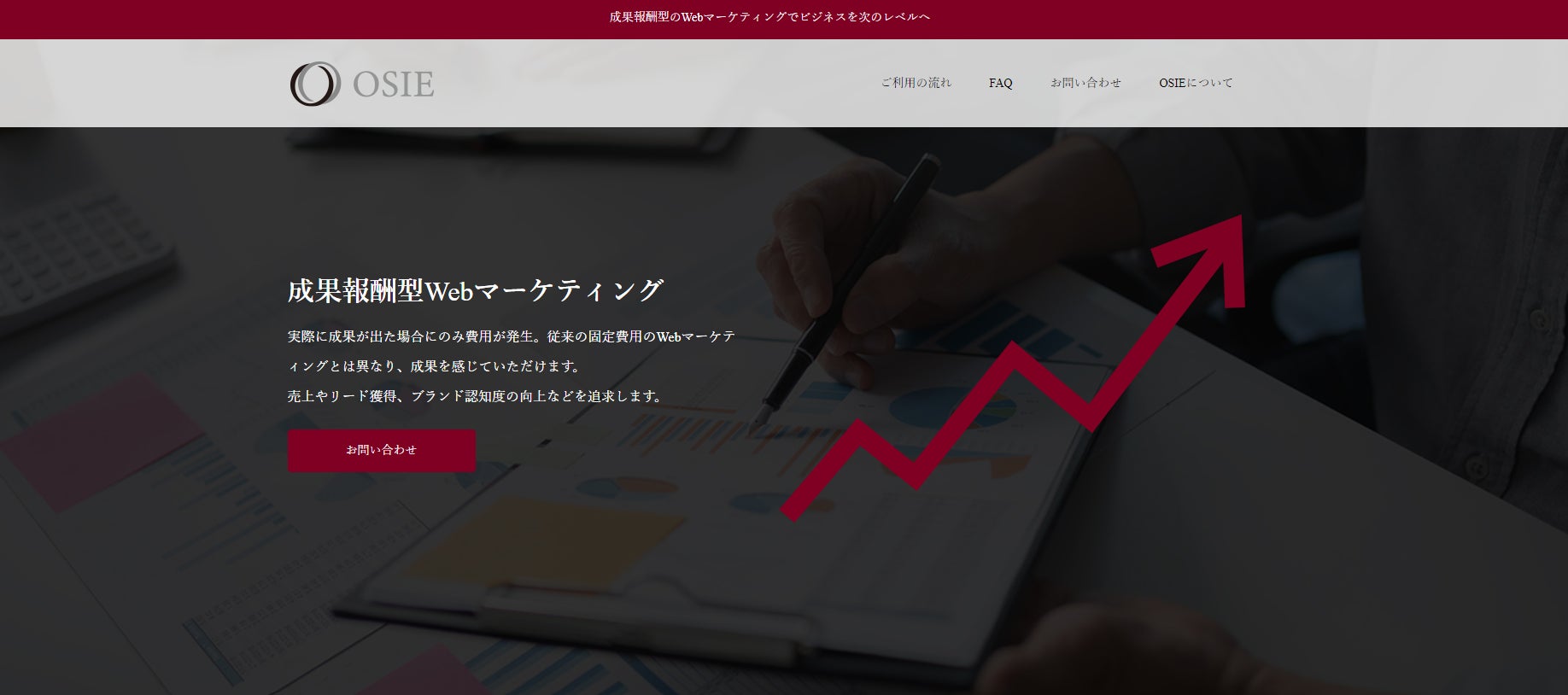 OSIE(代表:小原健太)は、成果報酬型のWebマーケティングをスタートしました。これまでの運用とは異なり目標が達成された際に運用手数料が発生するため、Web運用に対する不安を軽減することができます。