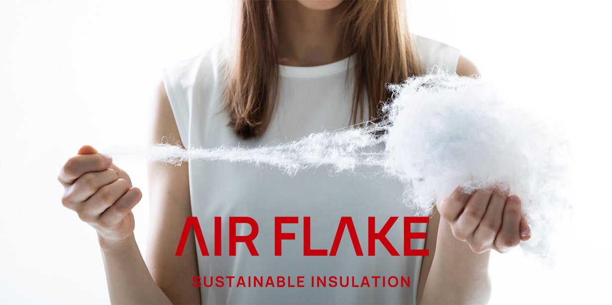 ウインターカジュアルの製造企画に約40年携わってきて、上質の素材を知り尽くしている代表が、新しいモノづくりを考えていた時に出会ったのが、クラボウが開発した次世代の高機能素材「AIR FLAKE / エアーフレイク 」。SDGs、アニマルフリーなど、どうにかしなければいけない、社会問題になっているモヤモヤしたものを解決できる素晴らしい素材、と目を見張りました。
