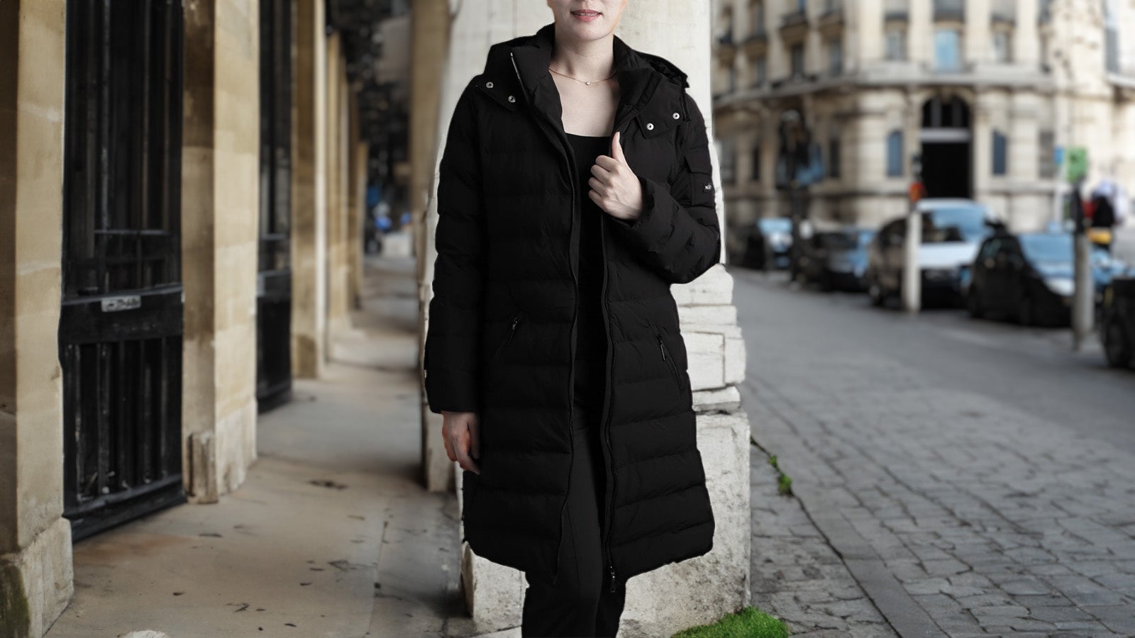 その結果、通常の中綿では表現するのが難しいキルティングの膨らみを出しつつ、適度な暖かさを保ち、着ぶくれしない綺麗なシルエットのロングコートが完成しました。