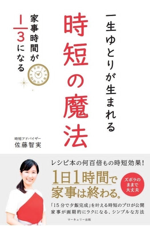 15 分で⼣飯完成をサポートする「時短アドバイザー」佐藤智実(サトウ トモミ) は、書籍『⼀⽣ゆとりが⽣まれる時短の魔法 家事時間が1/3になる』を、2024年9 ⽉15⽇(⽇)よりオンライン書店Amazonと、9⽉18⽇(⽔)より全国書店で発売開始いたします。