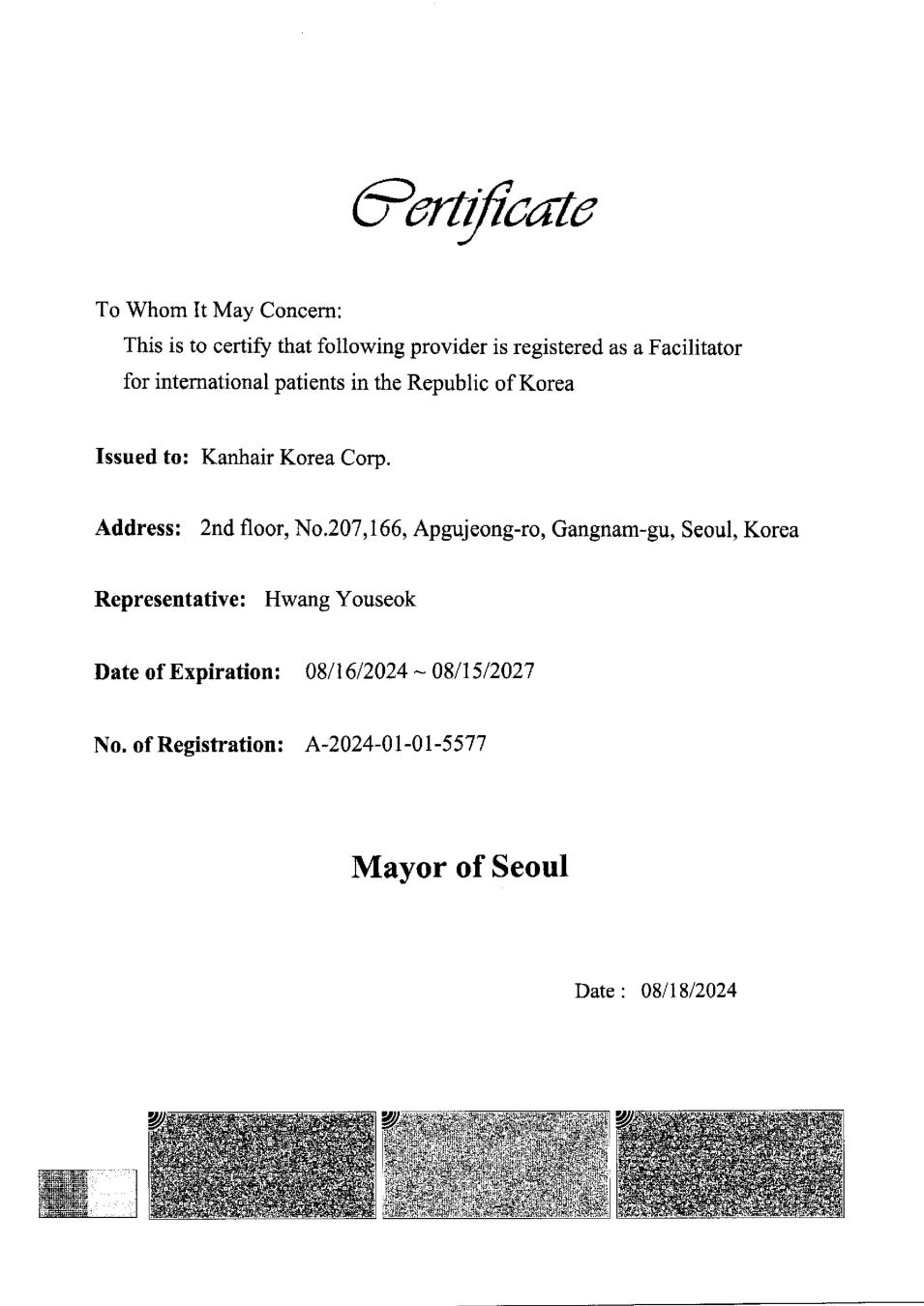 さらにカンヘアは、韓国政府認証(KAHF)収得で安心!日韓両国法人の韓国人スタッフが現地でもしっかりサポート!