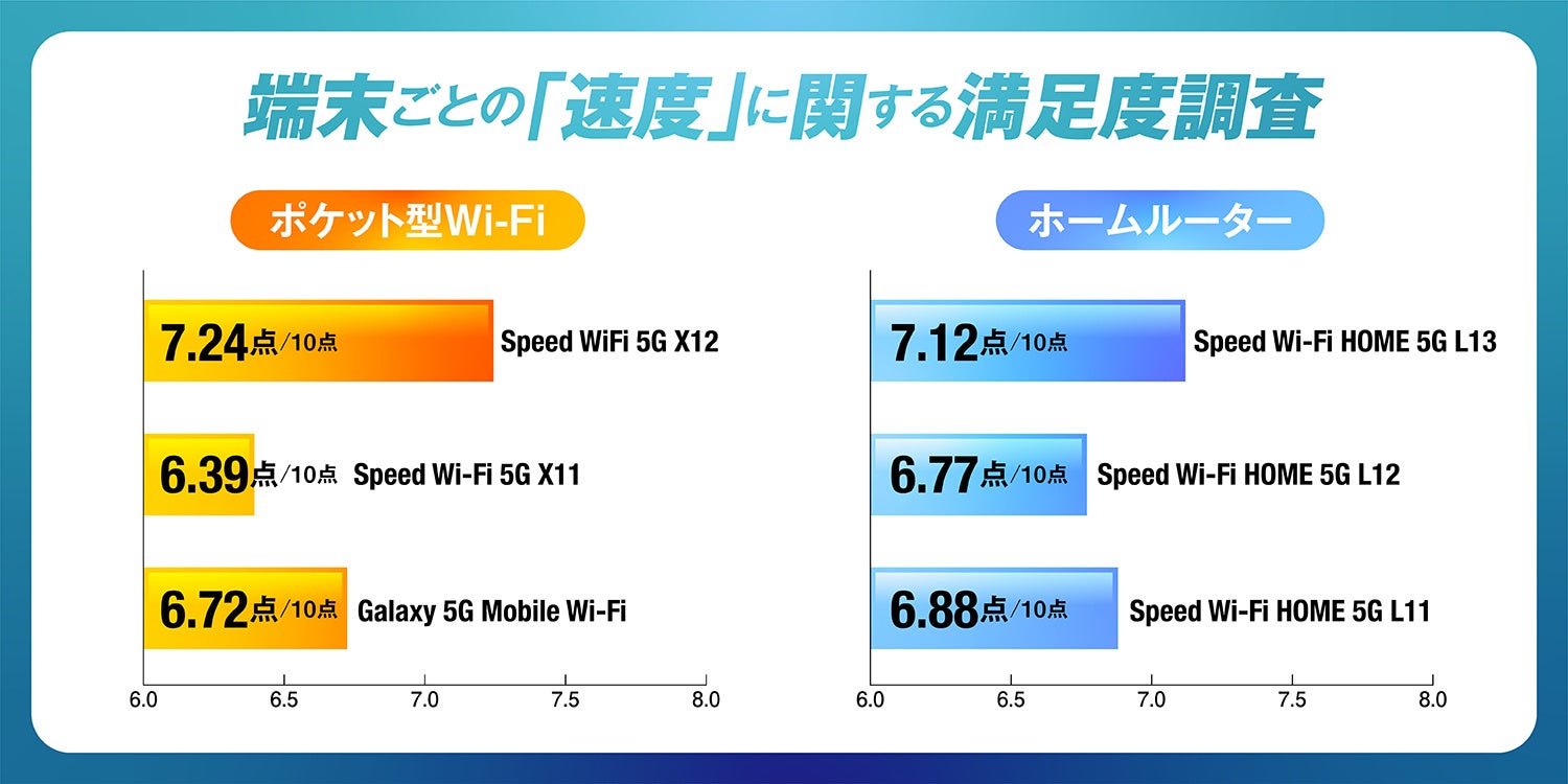 また、「ポケット型Wi-Fi」の『Galaxy 5G Mobile Wi-Fi』の満足度が高いのは、大画面かつタッチパネルによってスマホのような直感的操作が可能であることが関係していると考えられます。