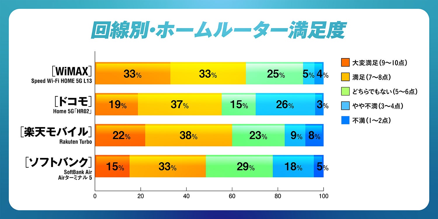 「ホームルーター」においては、他社と比べて「不満」を感じているユーザーが少ないという結果になりました。
