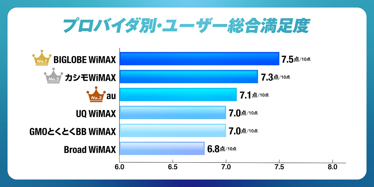 しかし、各プロバイダごとのユーザー満足度を調査した結果『BIGLOBE WiMAX』のユーザー満足度が高いことがわかりました。