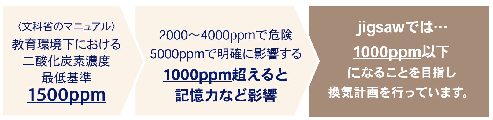jigsawでは、1000ppm以下になることを目指し換気計画を行っています。
