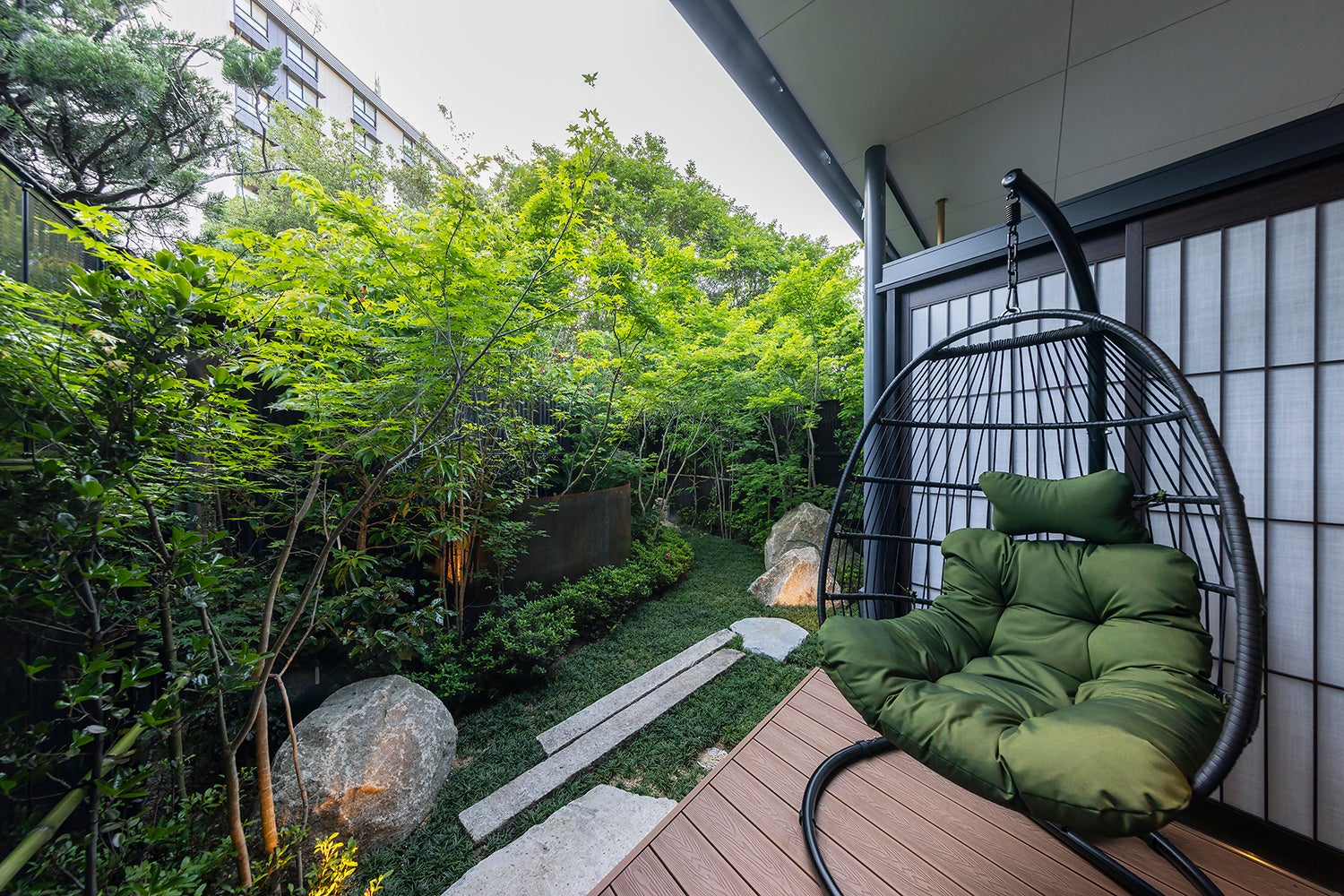 全4室の和モダンを基調とした和洋室には、旅の疲れを癒す「客室露天風呂」ほか、テラス併設の「プライベートドッグラン」をご用意。