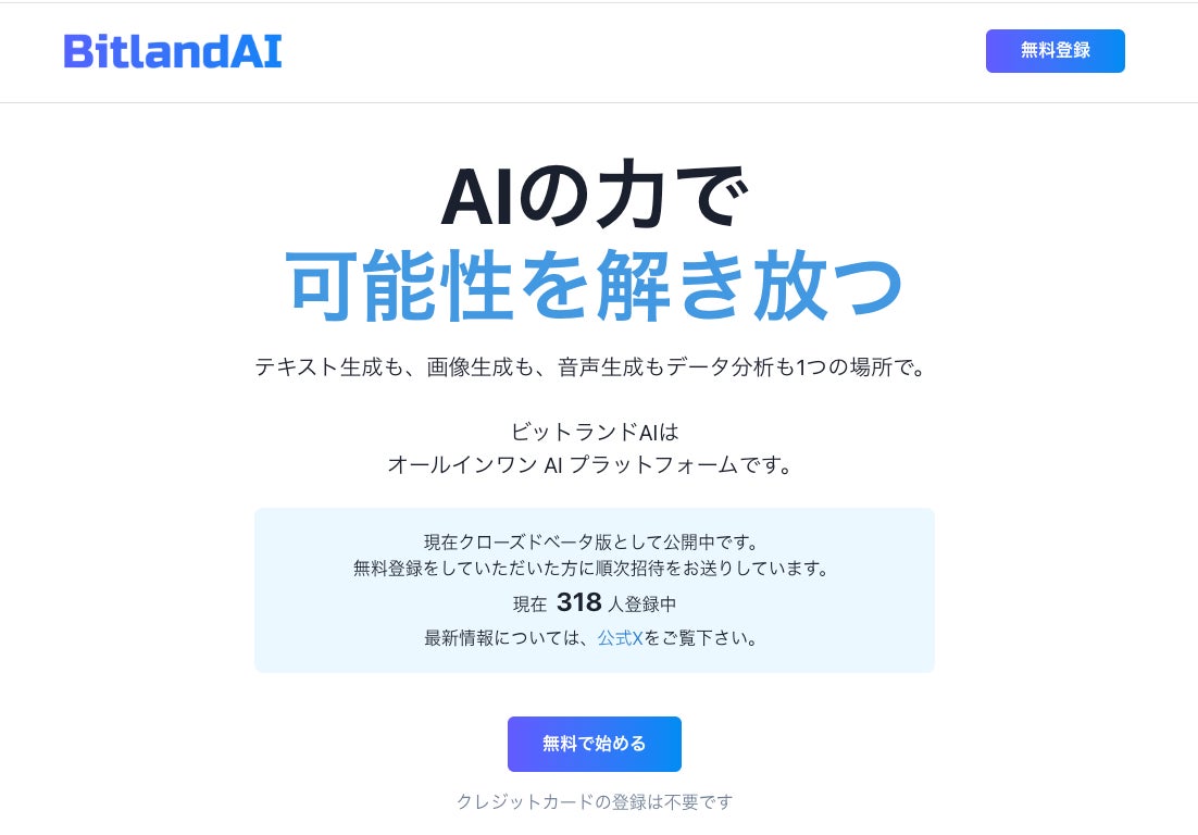 AI自律型企業の創出を目指す株式会社ビットランド(代表取締役古川渉一、以下ビットランド」)は、オールインワンAIプラットフォーム「BitlandAI」の事前登録を開始し、登録者が300名を突破しました