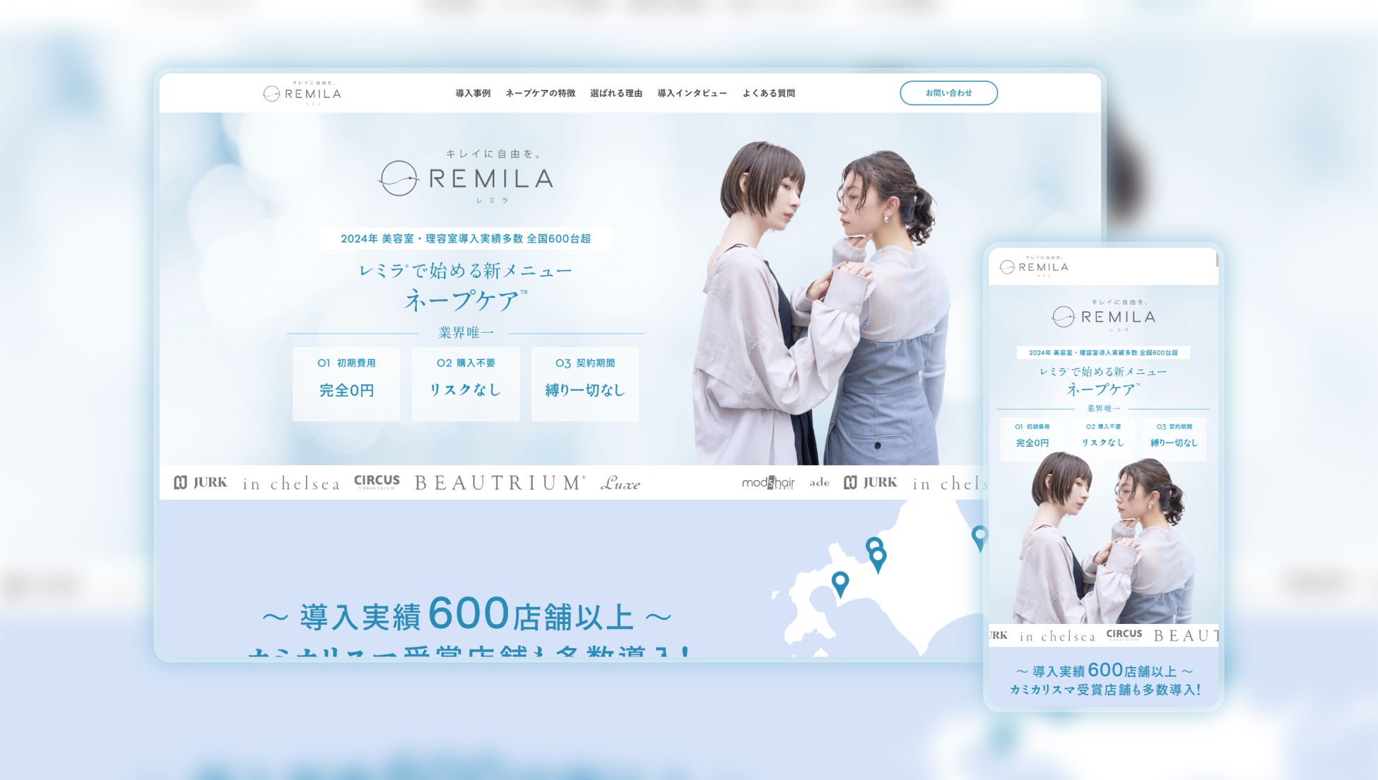 <美容室・理容室向けレンタル美容機器サービス『レミラ』のLP制作>