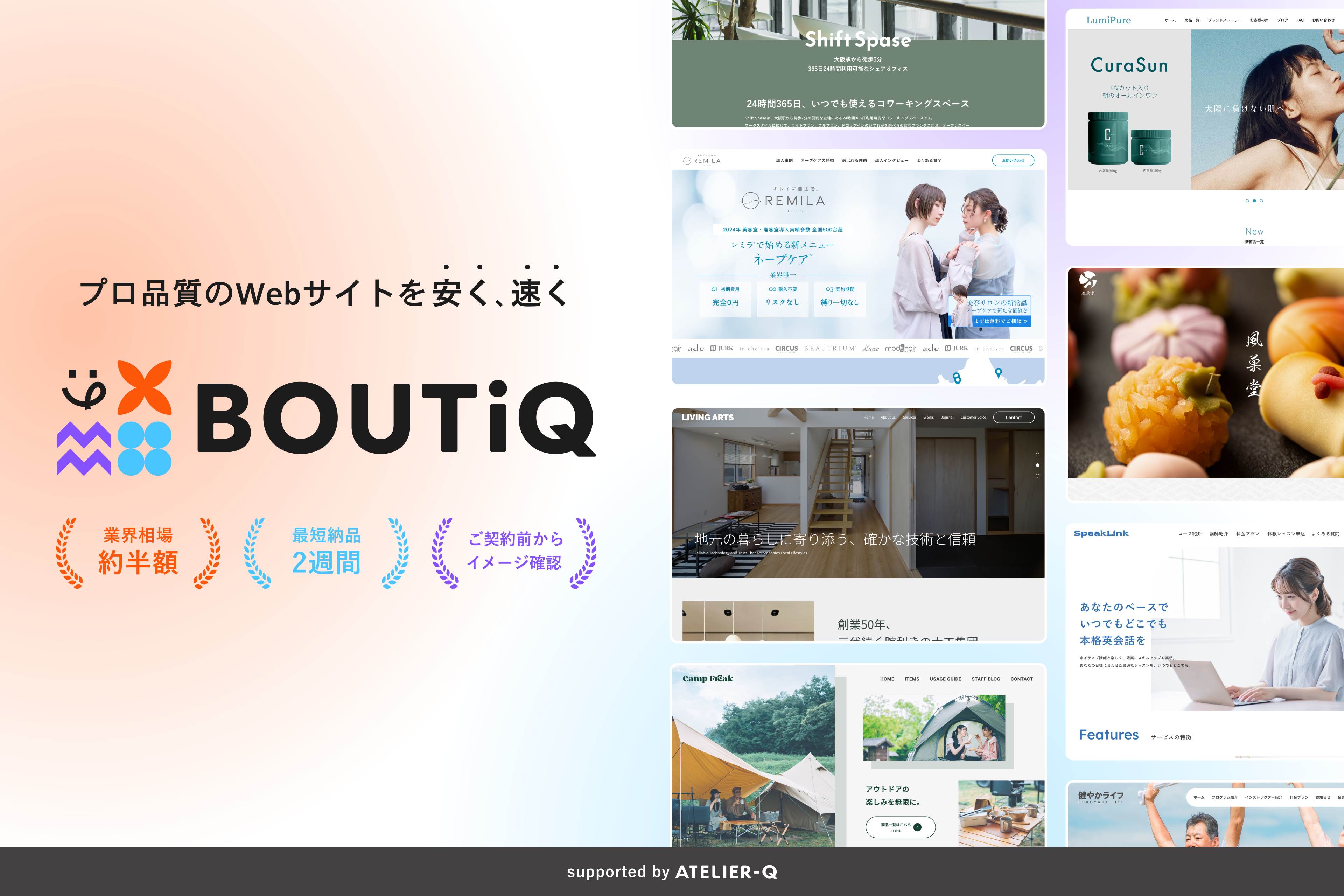 株式会社ATELIER-Q(本社: 福岡県福岡市中央区天神1-4-1、代表取締役:伊達 樹哉)は、Webサイト制作サービス「BOUTiQ(ブティック)」をローンチしました。
