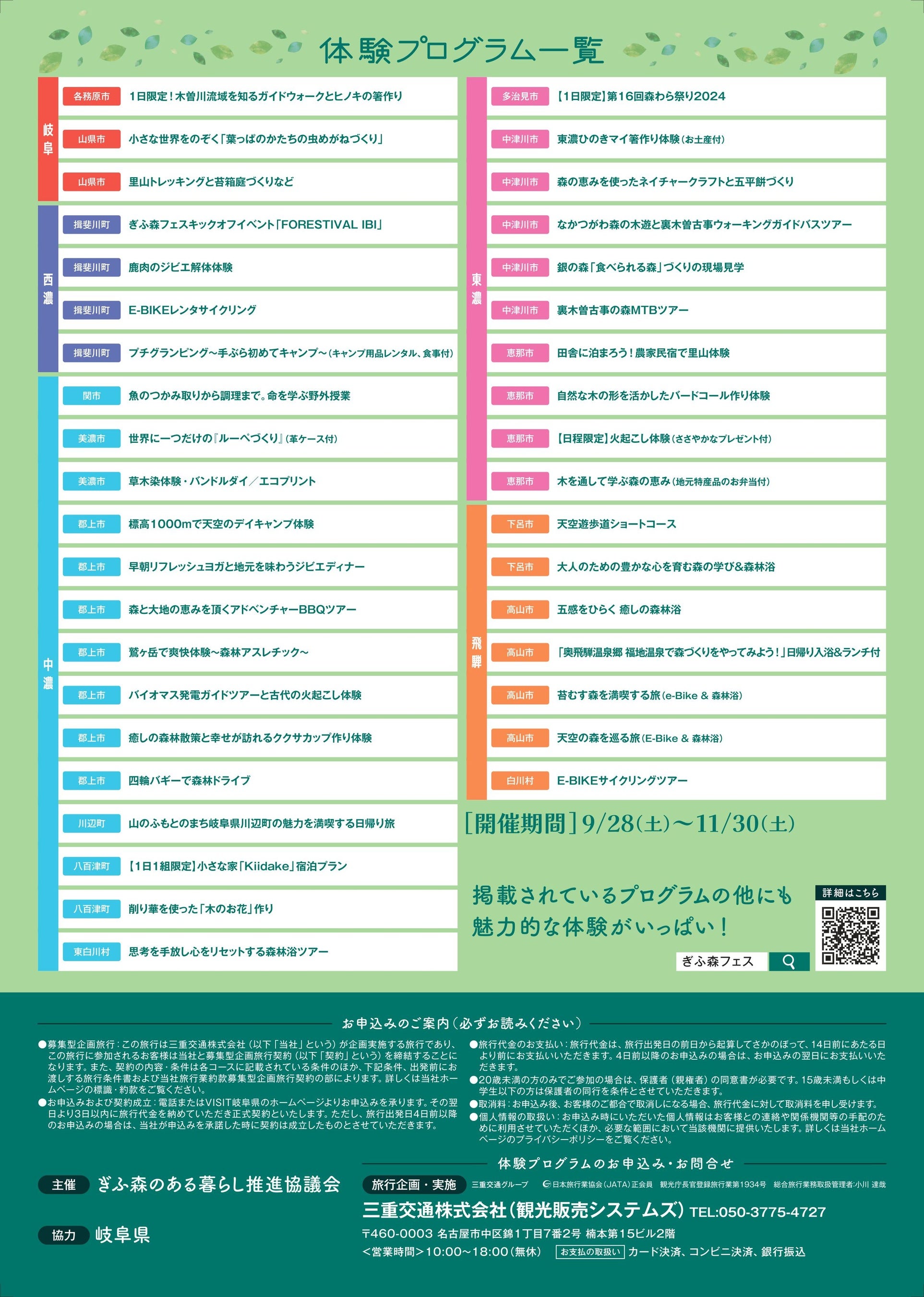 ※各プログラムの参加費は、上記ぎふ森フェス特設WEBサイトを参照にてご確認ください