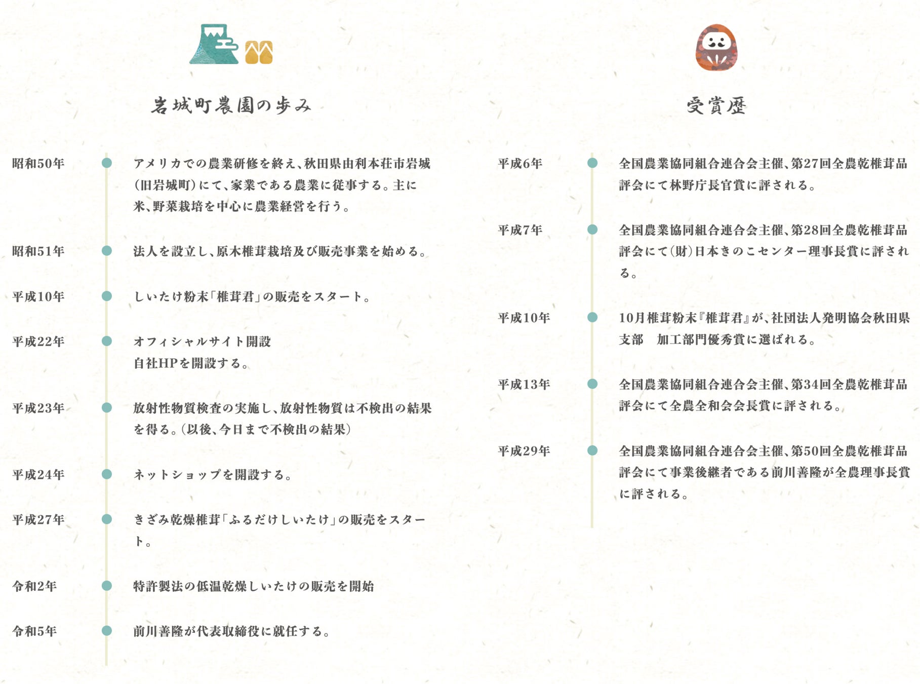 岩城町農園では、真心を込めて自然の味の「原木椎茸」を育てています。