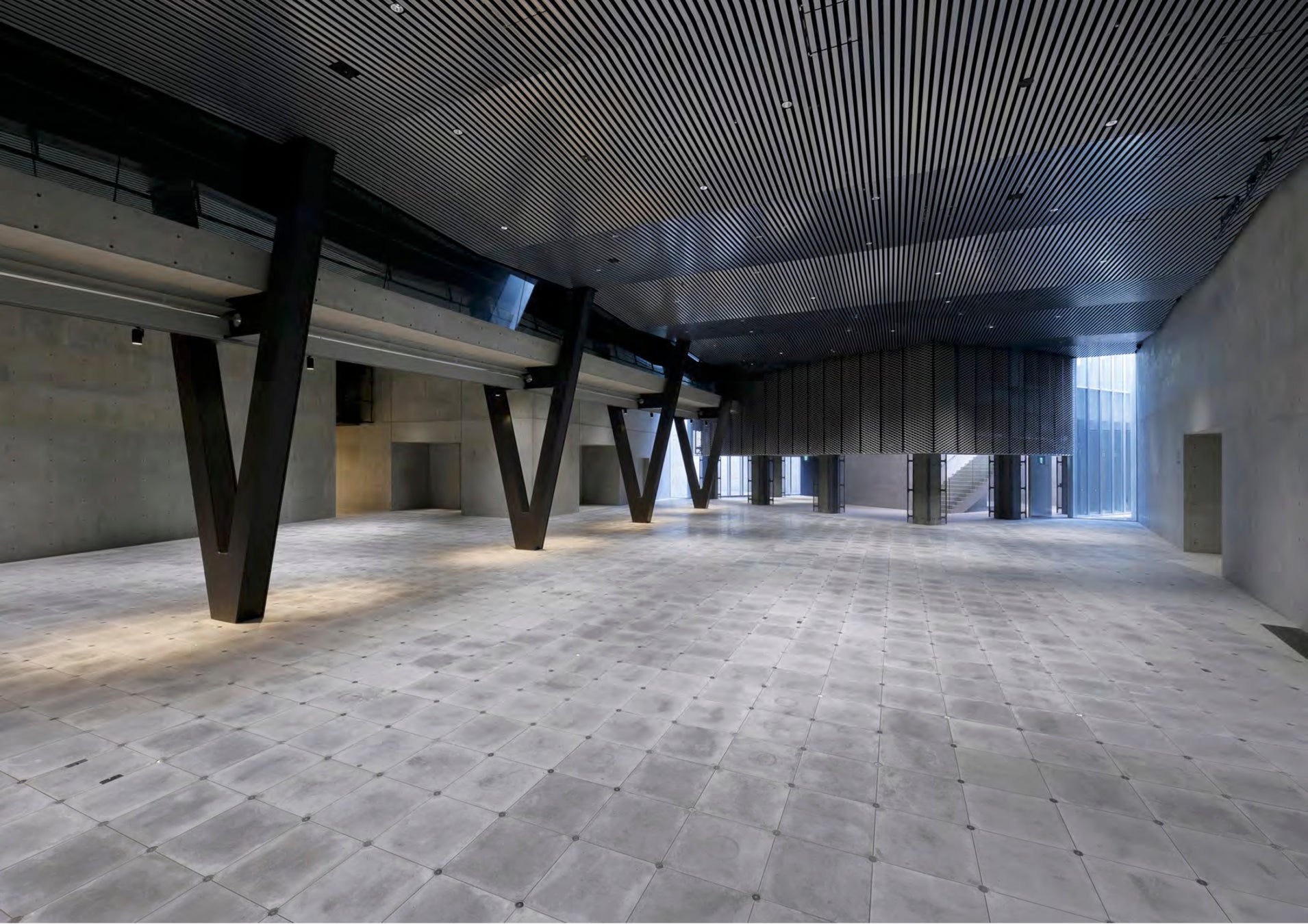本施設は、JR大阪駅の目の前に、世界的にも稀な大規模開発が行われる「グラングリーン大阪」の中核機能施設「JAM BASE」の主要施設として開業しました。豊かなみどりが広がる公園に現れた“2つの箱”が異彩を放ちます。設計・監理を日建設計、設計監修を安藤忠雄建築研究所が手がけ、うめきた公園の中に配置されたシンボリックなキューブ。その地下には合わせて約1,400㎡の空間を有しています。