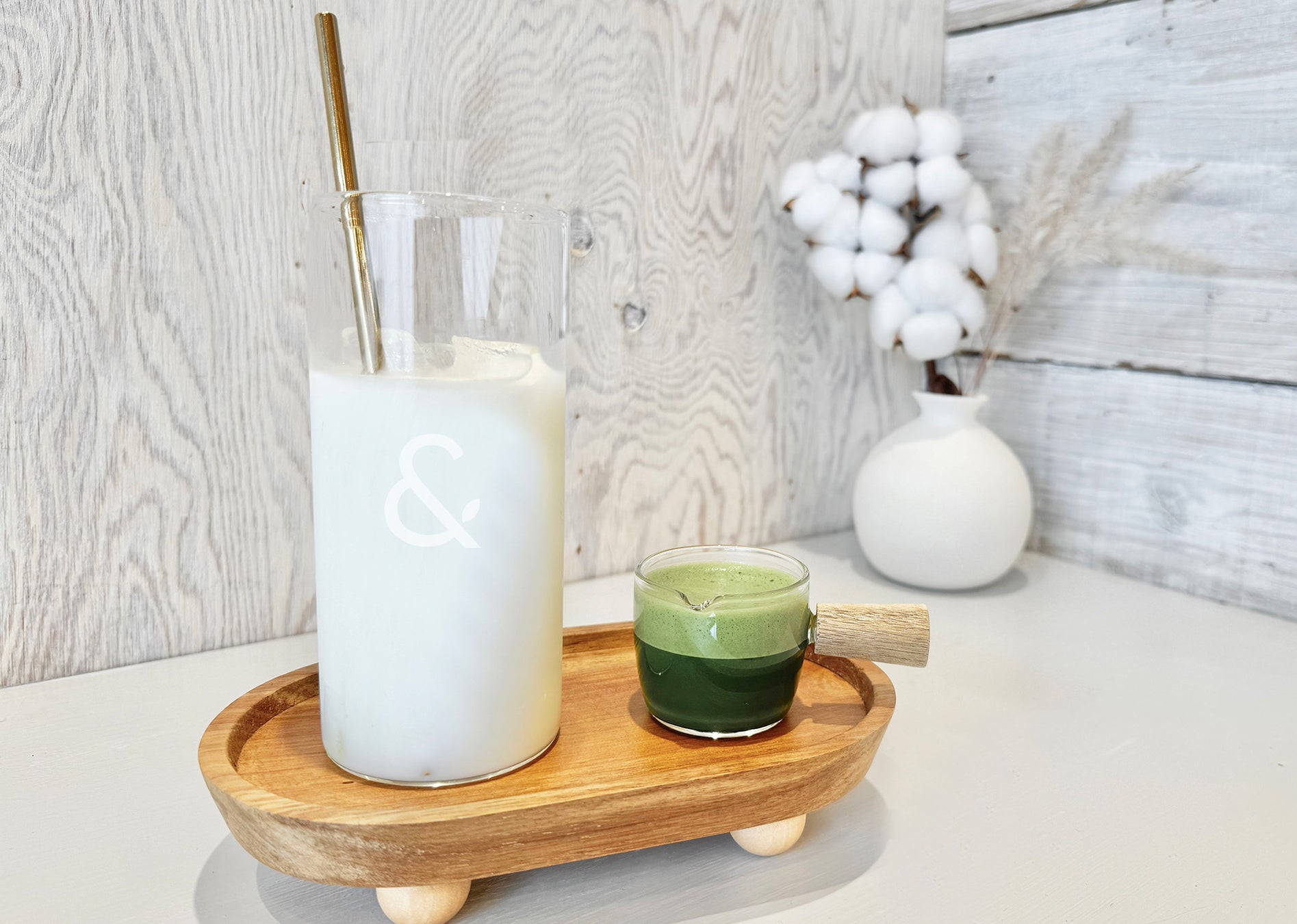 MATCHA&では通常の宇治抹茶ラテのほか、味噌やヘンプシードラテなど国内外のスーパーフード、発酵食をブレンドしたオリジナルの抹茶ドリンクメニューを提供します。また、オーツミルクとさとうきび糖を採用していますので、ヴィーガンの方でも安心してお召し上がりいただけます。