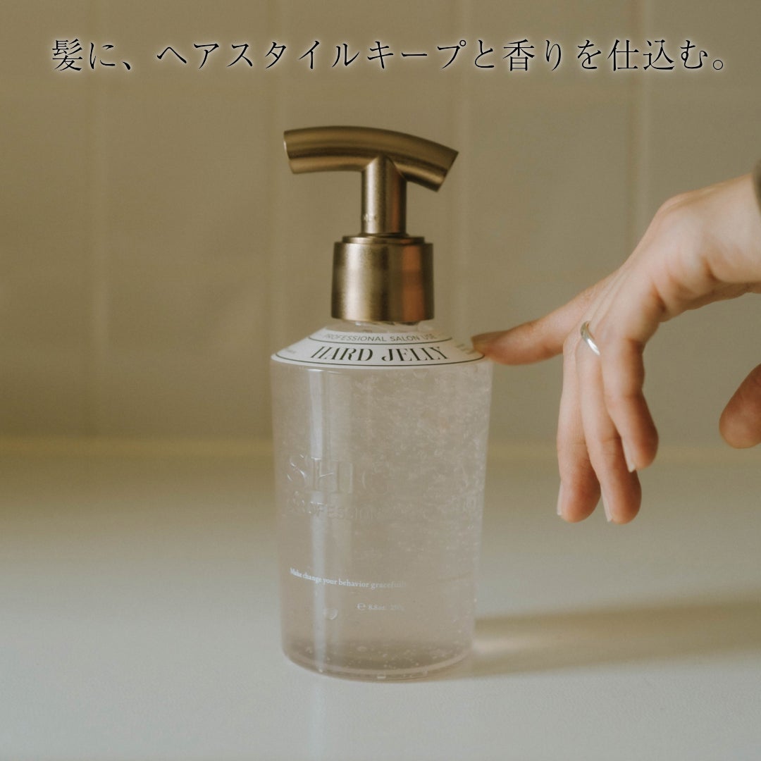 シリーズの中では、1番セット力があり、パリッと固まるハードジェルタイプのスタイリング剤。