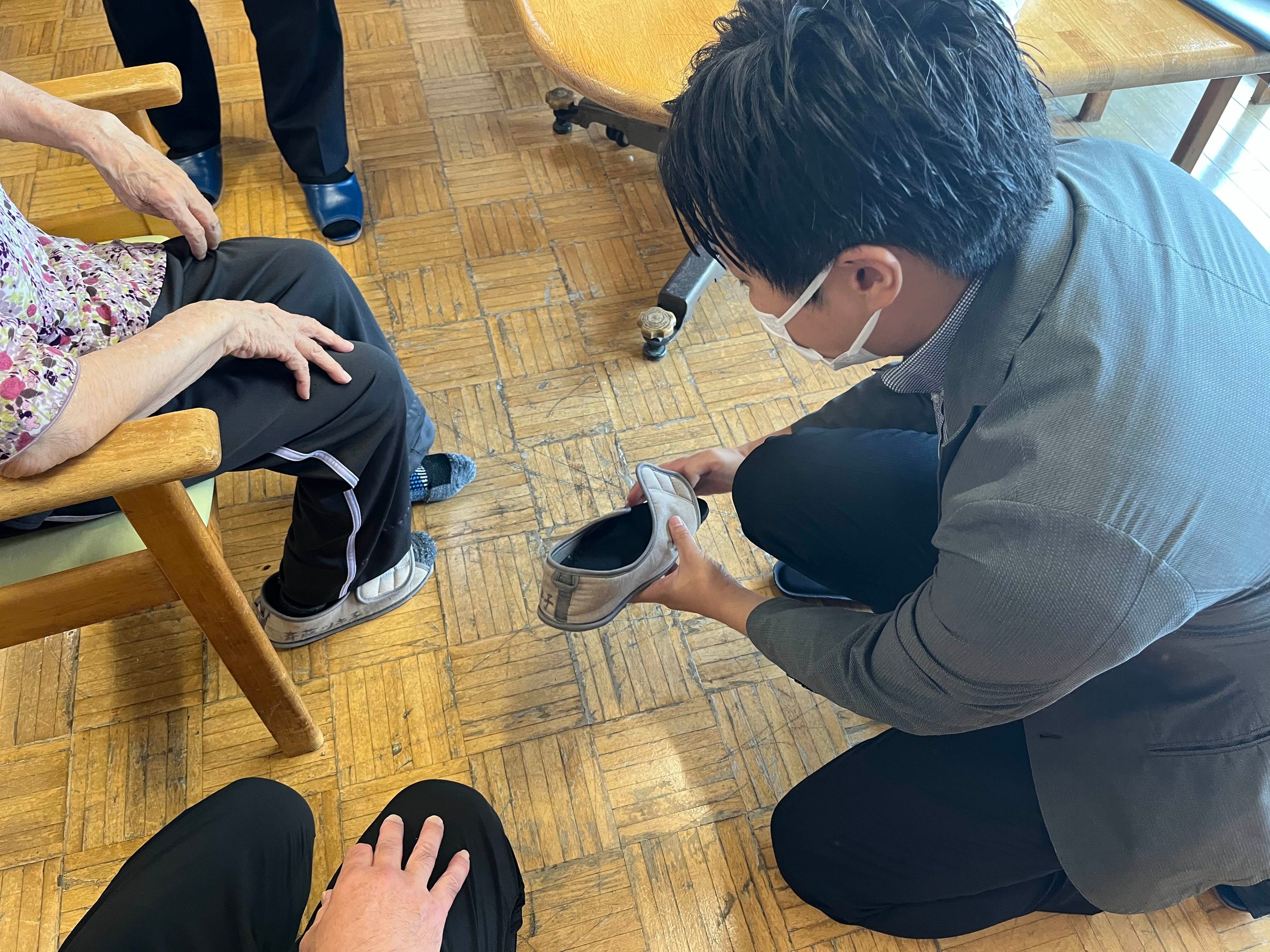 インソール型GPS開発のきっかけは、自身の介護経験です。コロナ禍で実家に戻った際、認知症の進行する祖父の介護に関わり、徘徊が始まると家の周囲を探し回る日々に家族一同、疲労困憊していました。