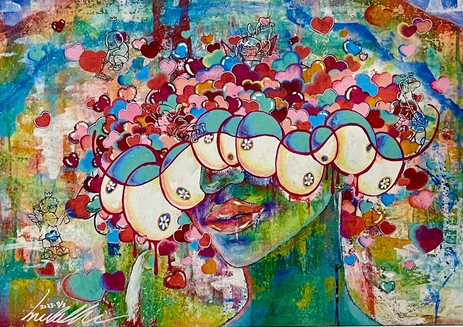 BeatやLyricから生まれる作品や、花柄などを用い、ポジティブマインドからダークな表現までメッセージ性のある作品をキャンパス、デジタルアート、立体造形などに落とし込むスキル&スタイルに注目いただきたい。