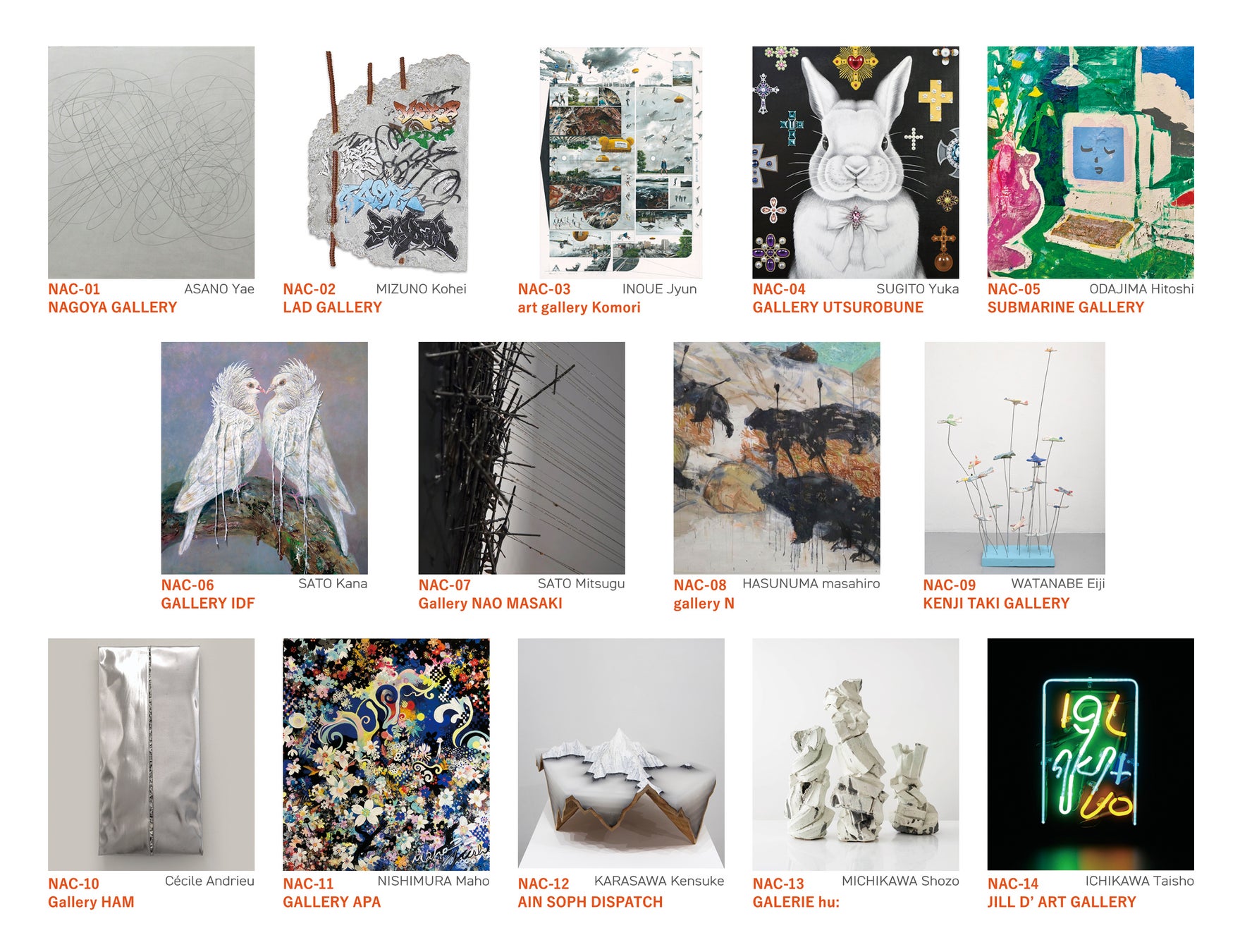 名古屋画廊、LAD GALLERY、art gallery Komori、GALLERY UTSUROBUNE、SUBMARINE GALLERY、GALLERY IDF、Gallery NAO MASAKI、gallery N、KENJI TAKI GALLERY、Gallery HAM、GALLERY APA、AIN SOPH DISPATCH、GALERIE hu:、JILL D’ART GALLERY(14ギャラリー)