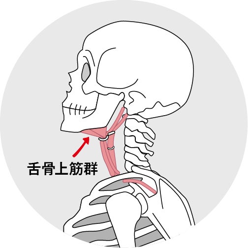 舌骨上筋群を鍛えることにより、嚥下力の向上とむせの予防につながると考えられています。