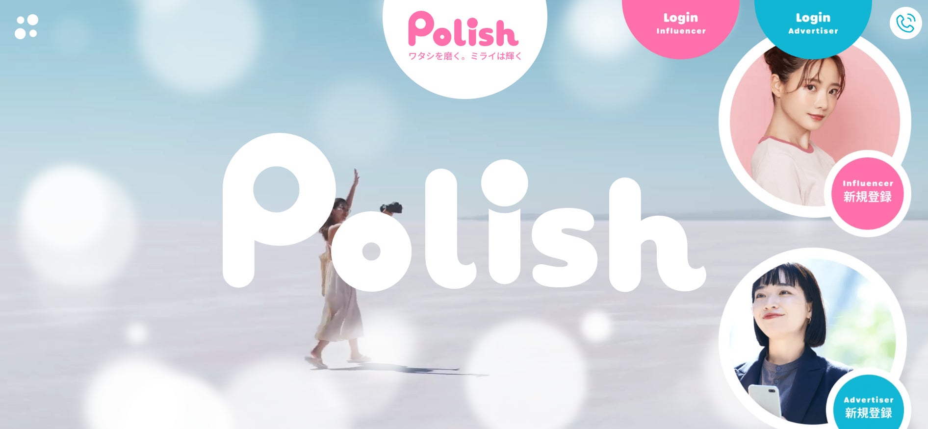 サイト名「Polish」には「自分を磨く、スキルを磨く」という思いを込めました。インフルエンサーが自分らしさを最大限に発揮しつつも常に自己研鑽を行い、また弊社と並走することでより高い専門性を発揮することを目指しています。これにより、広告主様にはこれまでにない信頼感と安心感、成果につながるマーケティングを提供できると自負しております。