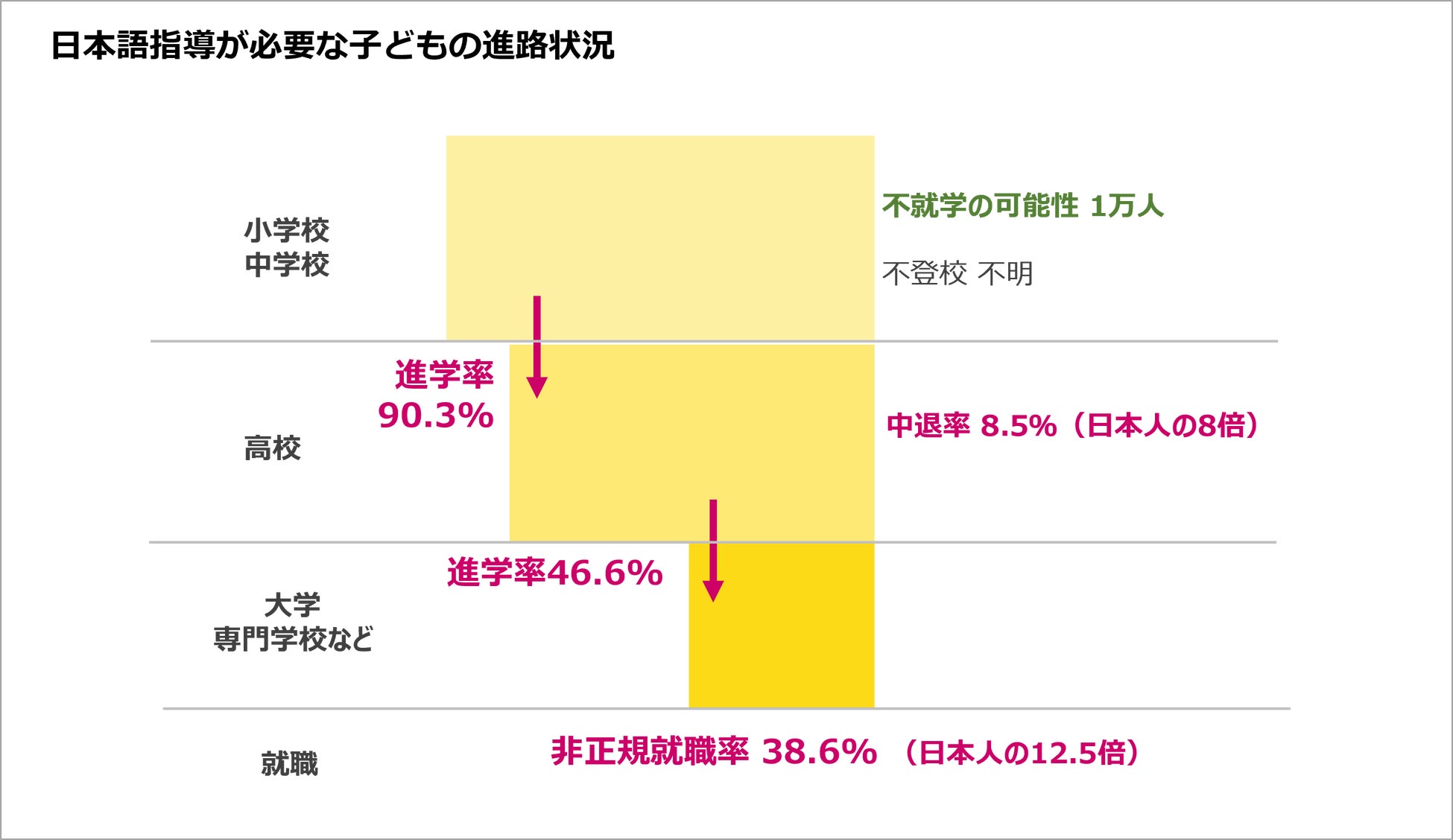 ■日本語が障壁にー教育課程の様々な段階でドロップアウトしてしまう割合の高い子どもたち