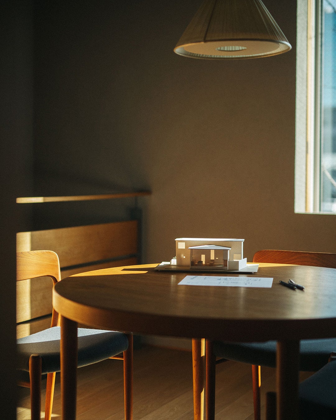 一般的なハウスメーカーでは、ひとりの設計士が年間約30棟もの住宅を担当すると言われるなか、ネイエの設計士が担当するのは4棟に限られています。設計士が1棟に向き合う時間が多いからこそ、何度も現地まで赴き、景色の移ろいや光の入り方、風の流れなど自然との調和を熟慮し、情緒的な暮らし方をご提案することが可能となるのです。
