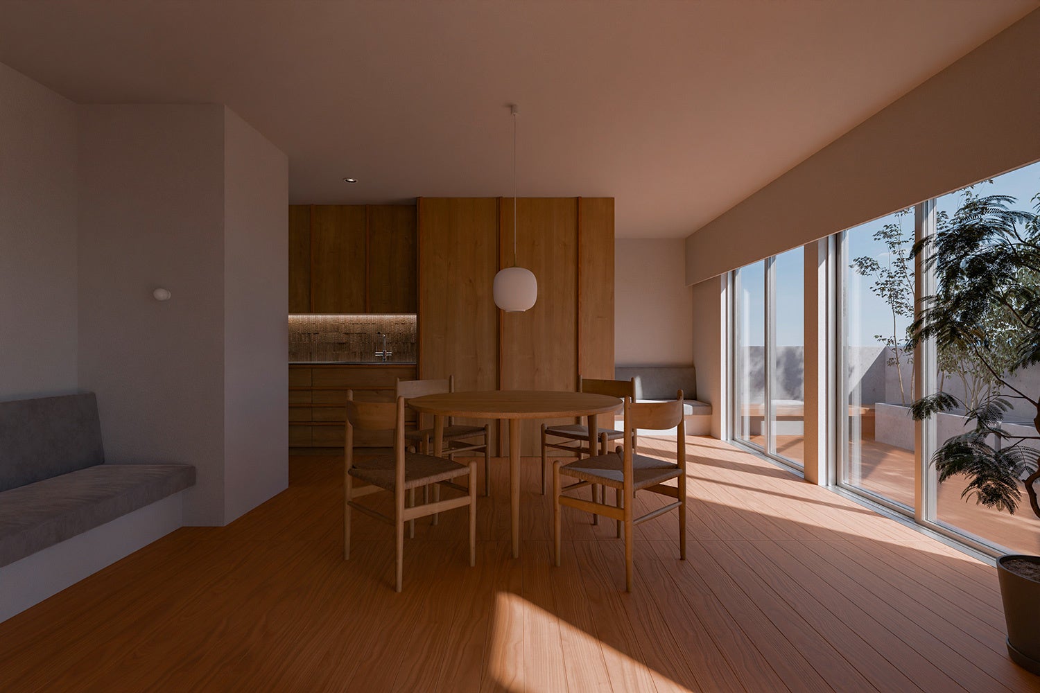 例えば、西に美しい山があれば、想像力を働かせその景色を暮らしに取り込む方法を考え、広いバルコニーがあれば積極的に庭をつくり、自然と共に暮らす情景を描きながら設計を組み立ててゆきます。」