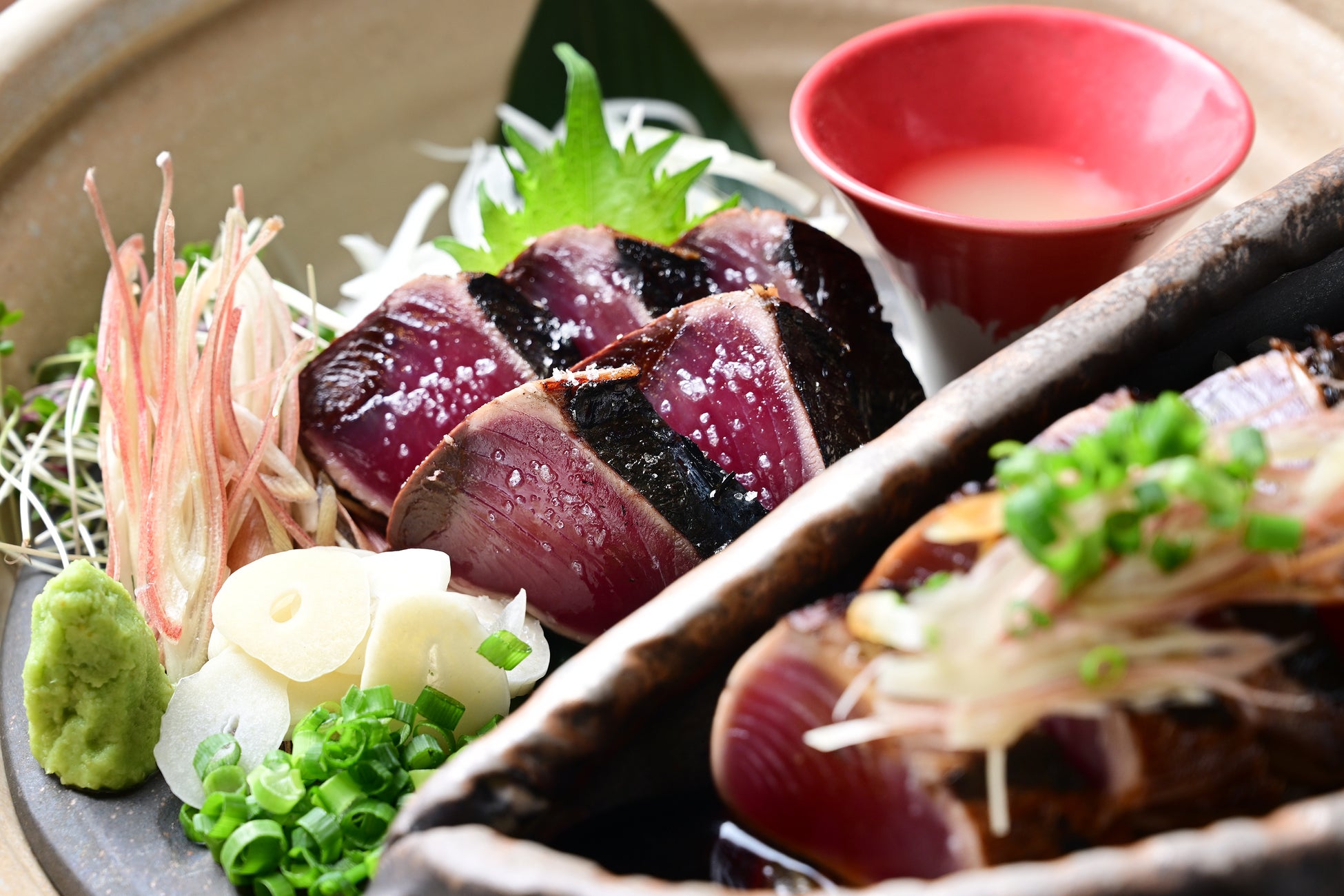 本場土佐流!鰹の旨味を引き出す天日塩で食べる「焼き切り塩たたき」