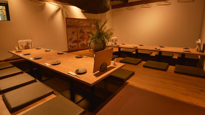 お席は目の前で調理風景が眺められるカウンター席にテーブル席、最大30名様までご利用頂ける掘り炬燵座敷をご用意。お一人様やデートなどの少人数利用はもちろん、各種ご宴会にご利用頂けます。