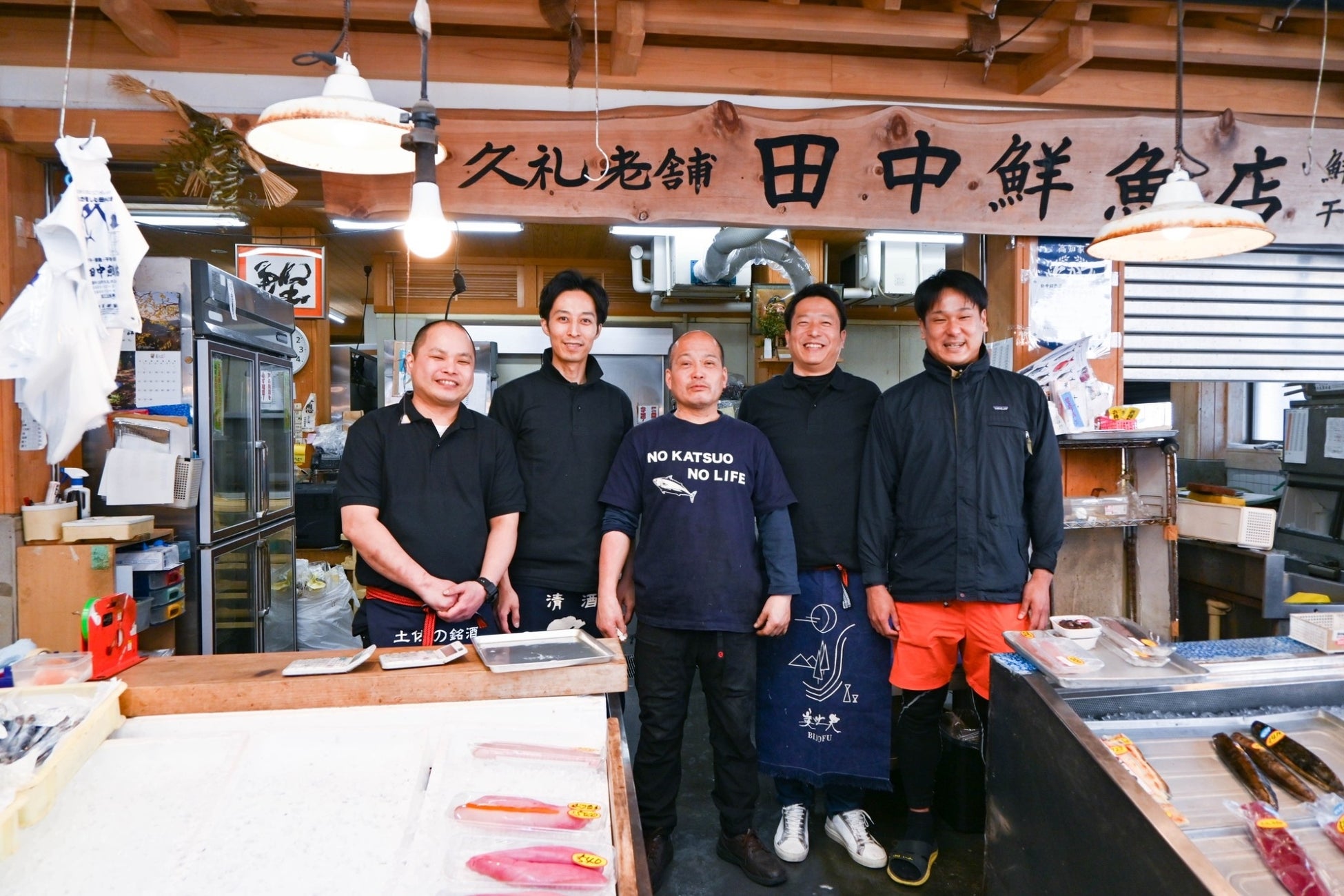 現代の店主で四代目となる、田中鮮魚店。百有余年魚と共に育んできた。ただ旨い刺身が食べたいために一本釣りにこだわる久礼の漁師の思いを魚屋として体言している。