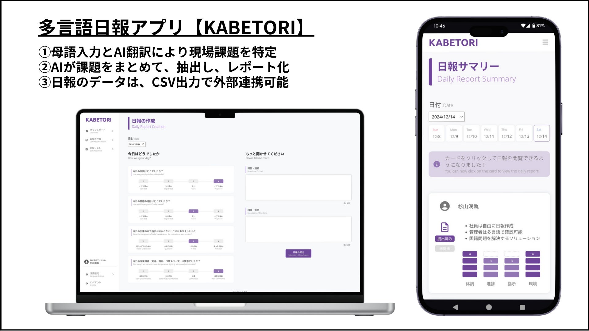 外国人雇用の【定着】【生産性向上】に特化した、多言語日報アプリ『KABETORI』のトライアル企業様を募集!