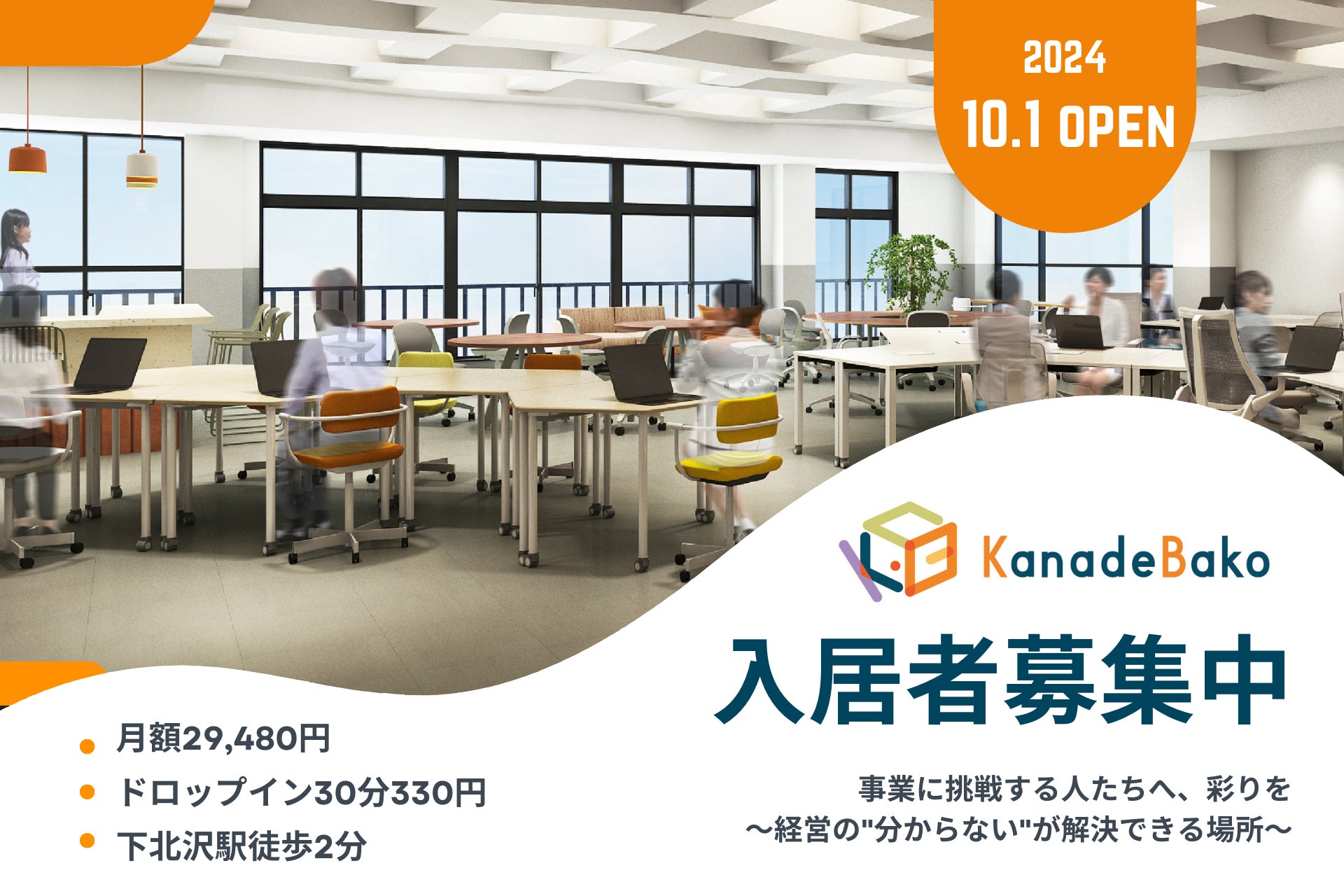 2024年10月、東京・下北沢駅から徒歩2分の好立地に、コワーキングスペース「KanadeBako」をオープンします。