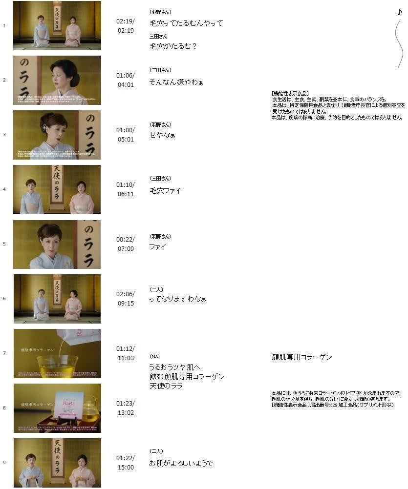 CMでは羽野晶紀さんと三田寛子さんが、それぞれ「天使のララ」のカラーである薄水色と桃色の着物を着用し、茶室をイメージしたセットに登場。大人の顔肌に大切な「水分量」や毛穴のたるみについて、共に京都出身であるお二人にとって馴染み深い京都弁ではんなりと掛け合います。