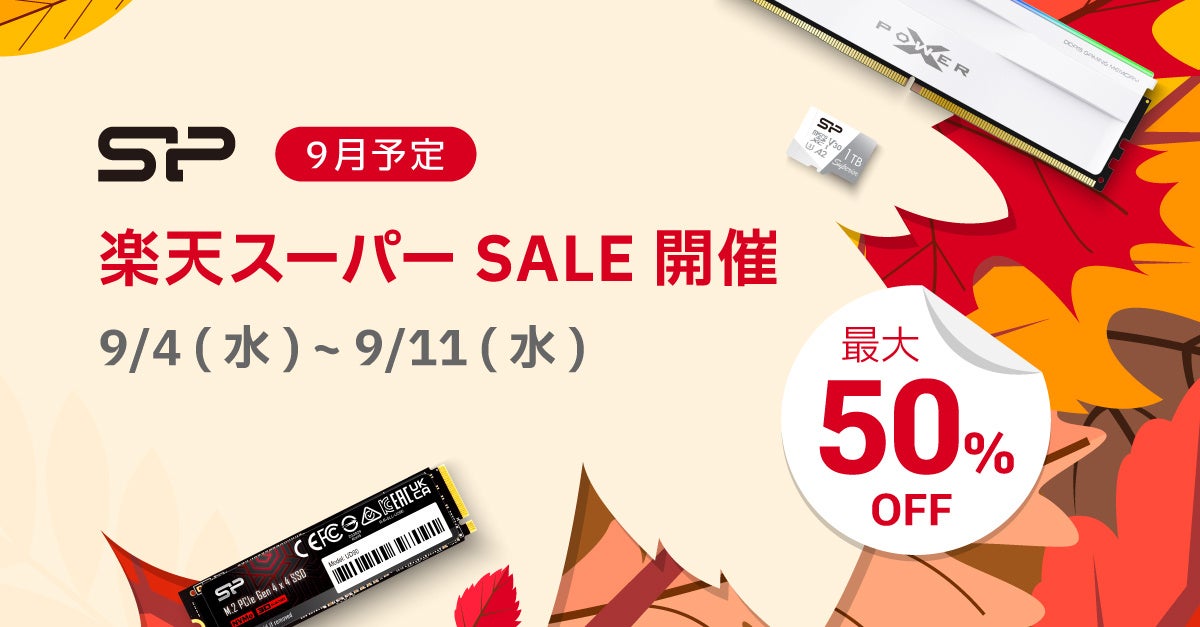 シリコンパワージャパン株式会社(以下「シリコンパワー」、本社:台湾台北市、CEO:陳慧民)は、日本市場参入15年間にわたる日頃のご愛顧に対する感謝を込めて、9月4日(水)より楽天スーパーセールにて190以上の大人気メモリ製品を対象とするセールを実施することを発表いたしました。