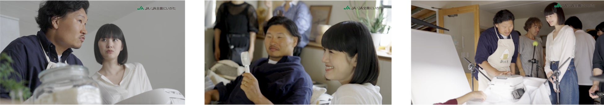 ご夫婦で初のTVCM共演となるお二人。撮影現場は終始笑顔が絶えず、カメラの前のお二人は、幸せな家庭そのものを映し出されているかのようで、あたたかい雰囲気を表現してくれました。稲垣啓太さんは、稲垣貴子さんと一緒にいると「笑わない男」として知られるイメージから一変し、柔らかい笑顔を何度も見せてくれました。撮影スタッフ一同も自然と笑みが溢れ出し、現場全体が穏やかな空気に包まれました。新潟米の食事シーンでは、頬張った瞬間思わず「おいしい!」と声に出し、幸せそうな笑顔を見せてくれました。