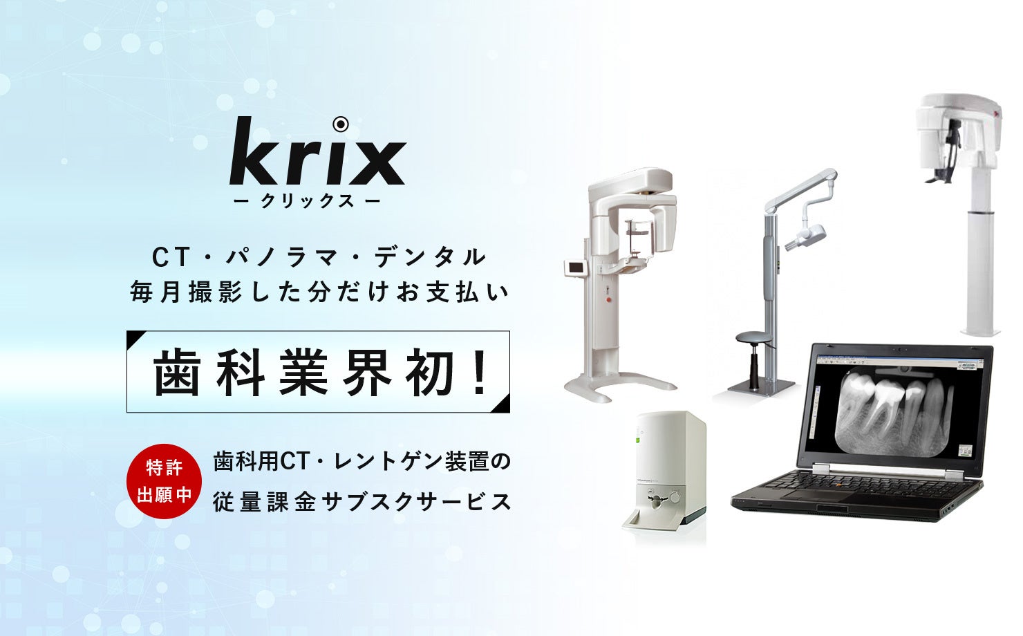 株式会社クリックスの提供する、歯科用レントゲン装置の従量課金型サブスクサービスのビジネスモデルに対する基本特許を取得