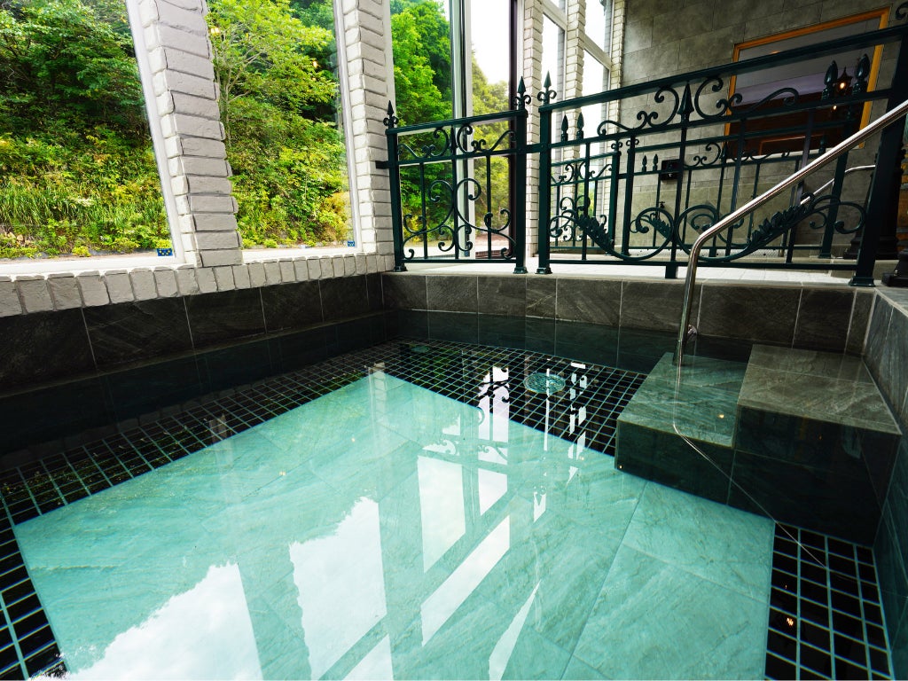 小樽運河をイメージしたパティオ(中庭)にある左側の水風呂。キンキン7℃のシングル設定です。右側の小樽運河水風呂(22℃)と冷冷浴がおすすめです。
