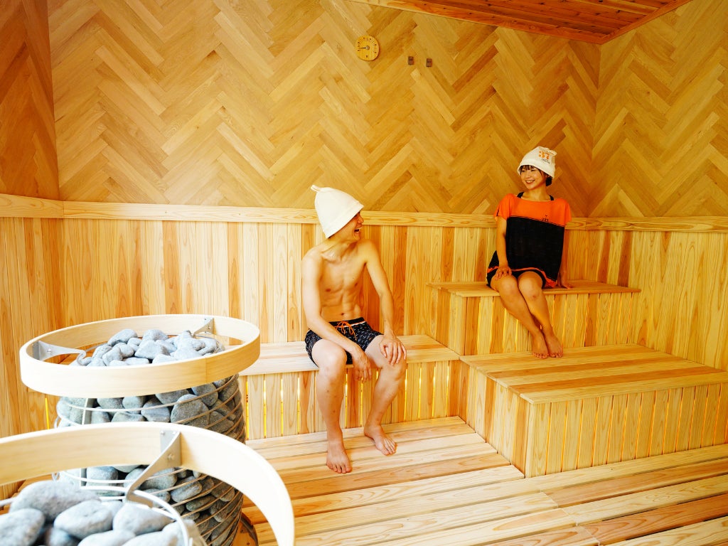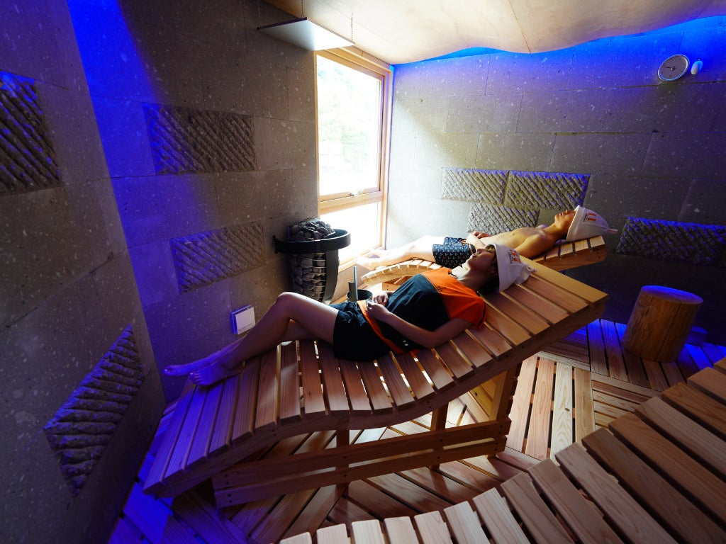 【サウナストーブ】HUUM「HIVE15」(日本初導入)を2台。マイルド設定にセルフでたっぷりのロウリュをしながら楽しむサウナ。
