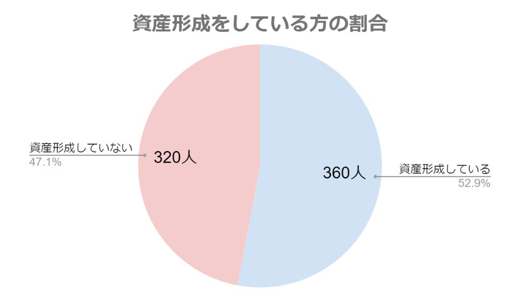 一方、320人(47.1%)については資産形成をしていないという結果です。