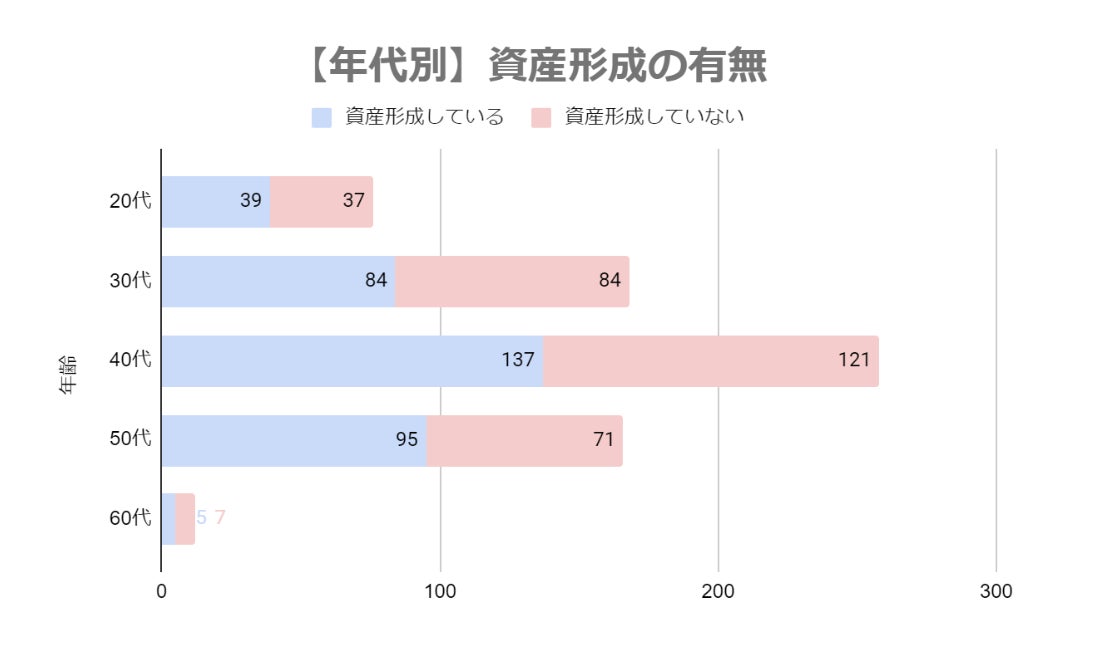 次に年代別についても資産形成の有無を集計しました。