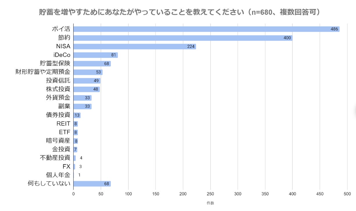 貯蓄対策の方法は「ポイ活」が486人(全体の71.5%)で最多