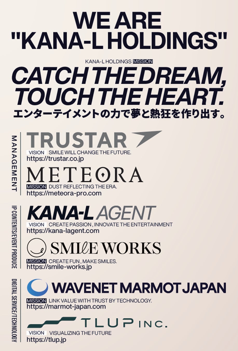 ・世の中に感動と熱狂の渦を創り出すIPコンテンツカンパニー「KANA-L AGENT」