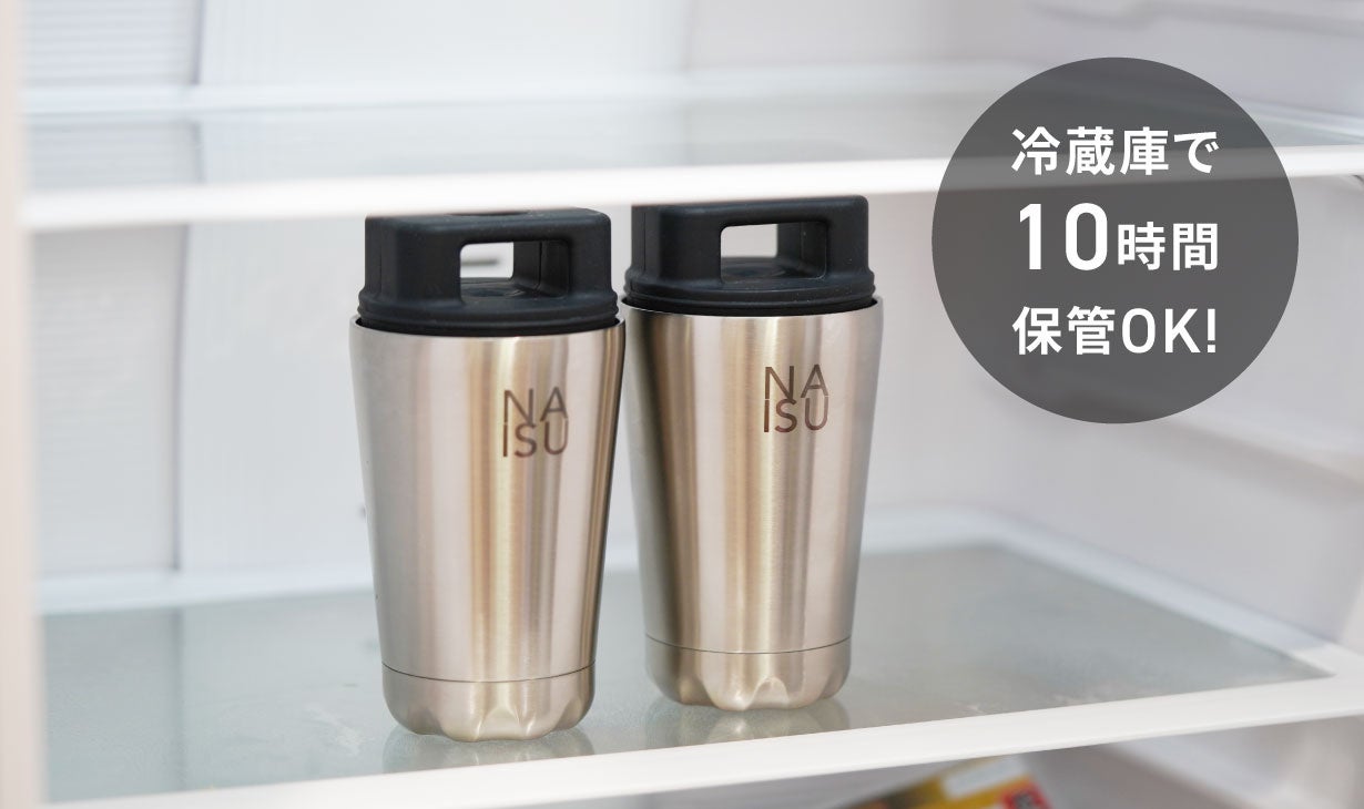 4、タンブラーサイズで冷蔵庫のサイドポケットにすっぽり収納